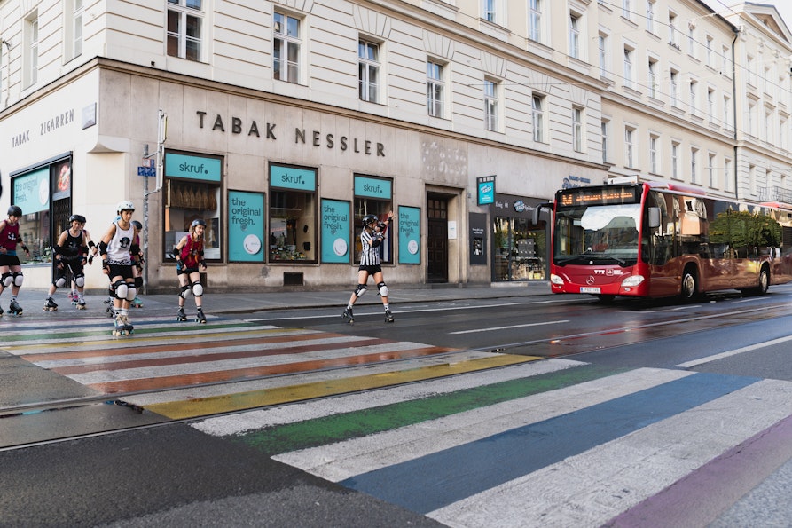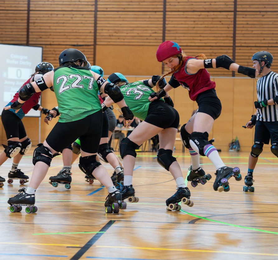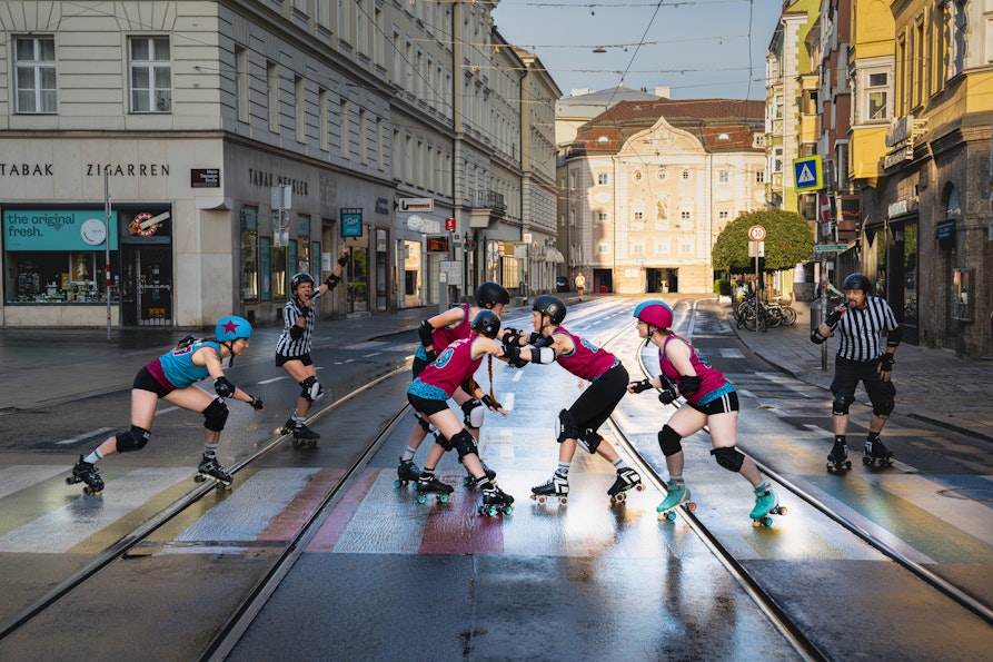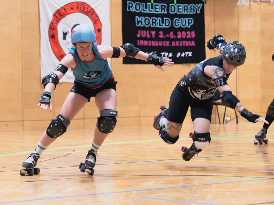 Es ist soweit: Der World Cup steht an! Vom 3. bis 7. Juli 2025 hosten die Fearless Bruisers den Roller Derby World Cup in der Innsbrucker Olympiaworld. „Das ist eine echte Sensation … es hätte auch Sydney werden können“, erzählt mir Grobiane – so ihr Derby-Name – vom Bozner Roller-Derby-Team Alp’n Rockets. Roller Derby ist ein ziemlich verrückter Vollkontaktsport auf Rollschuhen, der von zwei gegnerischen Teams auf einer ovalen Bahn ausgetragen wird und in den 1930er Jahren als Showsport in den Vereinigten Staaten entstand. „Punkte werden dabei durch das Überrunden von Gegner*innen erzielt. Der Sport wird vorwiegend von Frauen* ausgeübt und gewinnt auch in Europa zunehmend an Popularität”, so Grobiane.