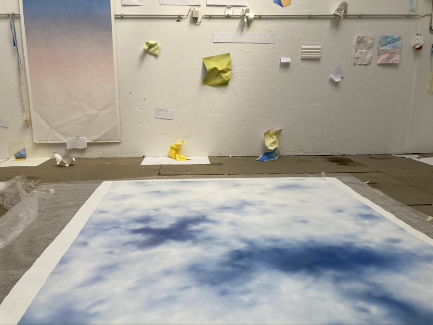 Die Außenwelt, vor allem die Natur bzw. Naturphänomene, wie Licht und die entstehenden Farberscheinungen, der einen Körper umgebende Raum und die Materialität und Stofflichkeit sind Inspirationen für mein künstlerisches Schaffen. Die Absicht dabei ist aber nicht ein realistisches Abbilden oder Aufzeichnen von Naturwahrnehmungen an sich. Diese Eindrücke sind für mich meist aus folgenden Aspekten interessant, wie z.B. dem Verhältnis zwischen Körper oder Objekt und Raum, der Zeitlichkeit und Bewegung, den wahrnehmbaren Richtungen und vor allem der damit verbundenen körperlichen Wahrnehmung und Wirkung. Die Inspirationen sind mehr Impulse, woraus sich Skizzen und Arbeiten in Verbindung mit verschiedenen Materialien entwickeln können. Ein Farbverlauf kann auf einer Leinwand, genauso aber auch auf einer vieleckigen, unregelmäßigen Multiplexplatte oder einer MdF-Platte sichtbar werden. Inhalte, wie bestimmte Gedanken oder Gefühle, sind für mich nicht Motiv der Auseinandersetzung. Interessant ist für mich die Wahrnehmung und ihre Wirkung auf unseren Körper und auf die Bewegung. Die Arbeiten sehe ich als Angebot für Besucher:innen, sich mit der eigenen Wahrnehmung und der Wirkung auf den eigenen Körper auseinanderzusetzen und sich dabei ihrer Stimmungen, Gefühle und Gedanke gewahr zu werden.