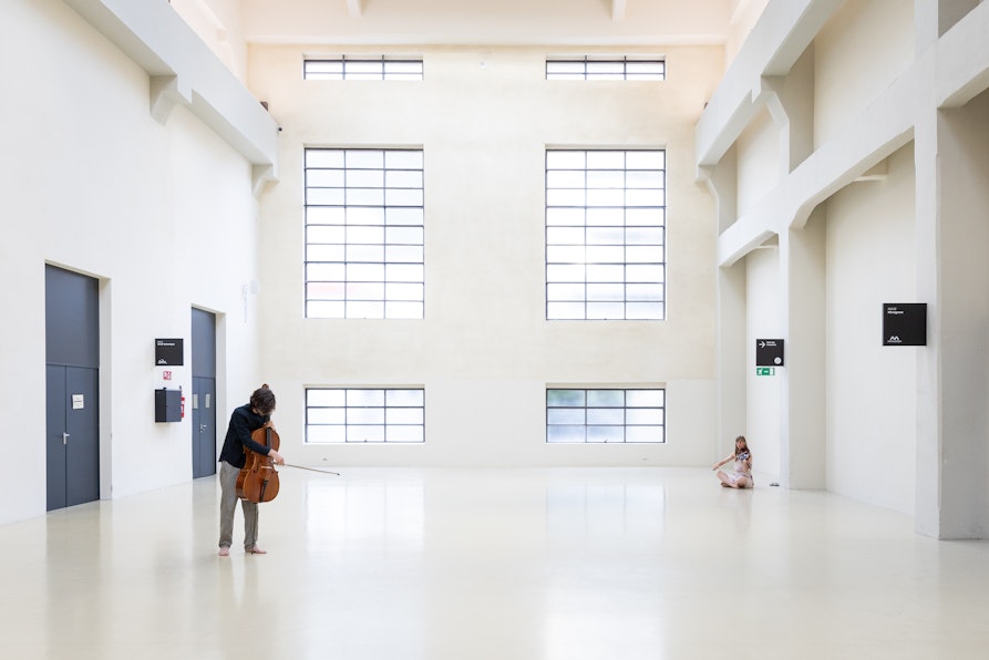 Die Eröffnung am Freitag, 27. Juni war so etwas wie ein akustisches Manifest dieses Geists. In der industriellen Weite der Kranhalle legten einige Musiker:innen des Amsterdamer Brainteaser Orchestra mit Industrial Echoes einen ersten feingesponnenen Soundteppich aus: akustisch, subtil, fast kammermusikalisch. Die Raumakustik zwischen Beton, Stahlträgern und natürlichem Abendlicht gab der Musik eine fast meditative Schärfe. Als später die volle Besetzung des Orchesters im Innenhof des NOI aufspielte, wurde daraus ein orchestraler Energiestrom, der mit Händen zu greifen war. Beton vibrierte, Luft flimmerte – Uhrzeit egal.