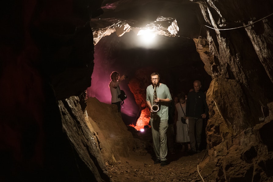 Am Sonntag tauchte das Festival dann wortwörtlich ab: 1.100 Meter unter Prettau im tiefsten Ahrntal verwandelte Reinier Baas den Klimastollen in eine Gitarre aus Fels, Hall und Heilluft.