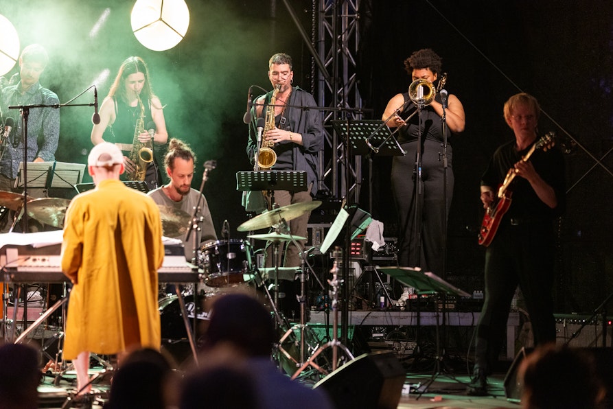 Am Donnerstag wird es im Parkhotel Laurin zunächst atmosphärisch und konzentriert: Der französische Saxofonist Sylvain Rifflet bringt seine Klangwelten in den Garten des Jugendstilhotels, irgendwo zwischen Jazz, Meditation und cinematischer Eleganz. Danach verlagert sich das Geschehen zurück ins Sudwerk, wo Georg Vogel und Andreas Lettner ihr gemeinsames Projekt Ohhnett präsentieren. Für ihr Debütalbum haben die beiden einen ungewöhnlichen Prozess gewählt, ein perfekter Match für die molekulare Netzwerk-Vision des Festivals: Sie improvisieren, schreiben die Musik anschließend aus dem Gedächtnis heraus nieder, bearbeiten und arrangieren sie neu – und spielen sie dann wieder ein. Georg Vogel baut dafür unter anderem eigene Claviton - Exemplare – ein Instrument mit mehr Tonstufen pro Oktave als üblich –, das seine eigene Handschrift in den Sound einbringt. Improvisation und Studioarbeit greifen so ineinander und schaffen Musik, die sowohl lebendig als auch präzise wirkt. Gerade das ist Jazz: Wenn Freiheit und Form sich gegenseitig überraschen.
