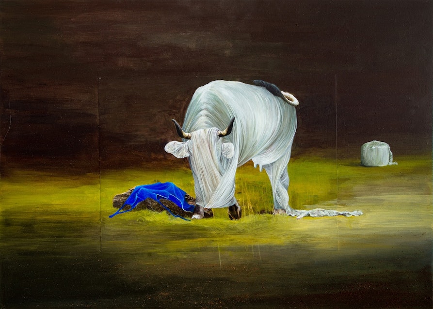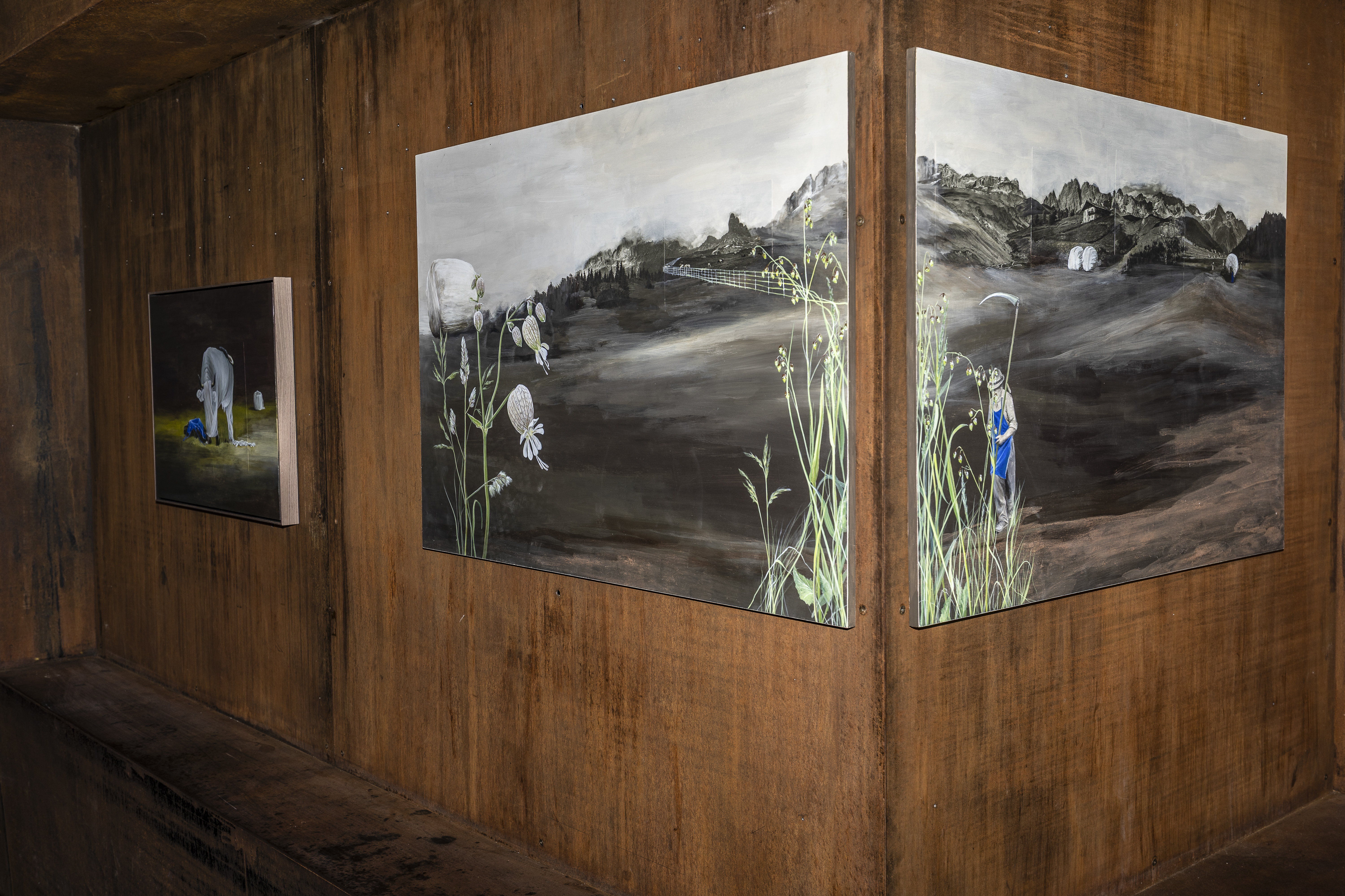 In meiner Arbeit auf Schloss Tirol geht es vor allem darum, die gegenwärtigen Herausforderungen der Landwirtschaft sichtbar zu machen. Ich beschäftige mich mit den Auswirkungen moderner Praktiken, aber auch mit der Frage, wie der Bauer in diesem Kontext seinen Platz findet. Die Landwirtschaft wird zunehmend industrialisiert und von Lobbys bestimmt. Die Ausstellung bietet Raum, um sowohl die kritischen Aspekte zu hinterfragen als auch die oft übersehenen positiven Seiten des bäuerlichen Lebens zu würdigen. Wenn wir das Verb „kriegen“ mit „schaffen“ übersetzen, heißt der Titel „Was schafft der Bauer“ und ich denke er schafft auch den Wandel in ein reflektiertes Nutzdenken.