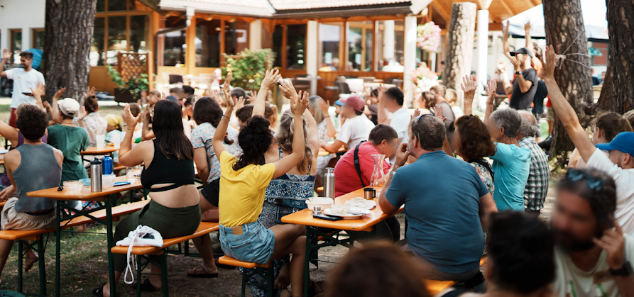 Am Klimacamp kann grundsätzlich jede*r teilnehmen – egal ob mit viel oder wenig Vorerfahrung, ob jung oder alt. Unser Programm ist bewusst dreisprachig (Deutsch, Italienisch, Englisch) gestaltet, damit möglichst viele Menschen sich wiederfinden können. Neben politischen Diskussionen und Vorträgen gibt es auch kreative Workshops, Raum für Musik und Kunst sowie Angebote für Kinder – das Camp ist nicht nur theoretisch, sondern auch praktisch ein lebendiger Ort zum Mitmachen, Austauschen und Ausprobieren.