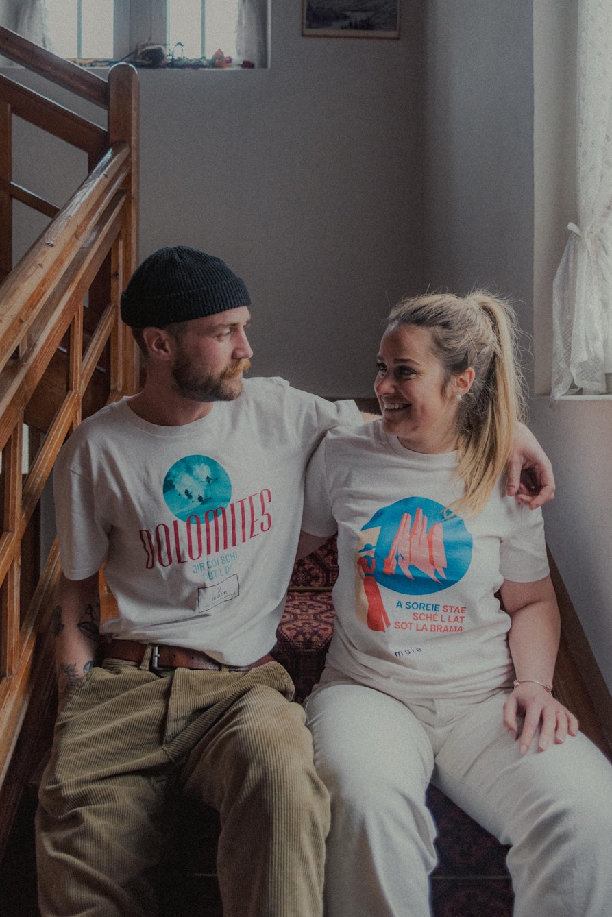 Per Chiara e Francesco, però, oltre all’estetica anche l’aspetto della sostenibilità è sempre stato importante e, da subito, hanno cercato materiali ecologici e riciclati non solo per i capi ma anche per il packaging. Le T-shirt sono, infatti, sono realizzate da un’azienda che produce con scarti di tessuti biologici, ottenendo sì il colore di fondo meno uniforme, ma anche un prodotto decisamente più sostenibile. I packaging, invece, sono realizzati in cartone riciclato con cartellini in tessuto di scarto e fibre d’erba. Grazie a queste scelte verdi, tutti i capi sono certificati Global Recycled Standard, Oeko Tex, Peta approved Vegan e Fair Wear. Riciclate, vegane, sostenibili e molto carine…cosa volere di più? Se le Maie di Chiara e Francesco vi hanno incuriosito, la bella notizia è che potete acquistarle nei negozi Alpen Chic di Pozza di Fassa e Tessilcasa di Canazei (TN), ma anche direttamente in direct sulla pagina Instagram @maie.fasciane con spedizioni in tutta Italia. Io non vedo l’ora di ricevere la mia per posta, così indossandola provo a dimenticarmi dell’afa padana e mi immagino in Val di Fassa.