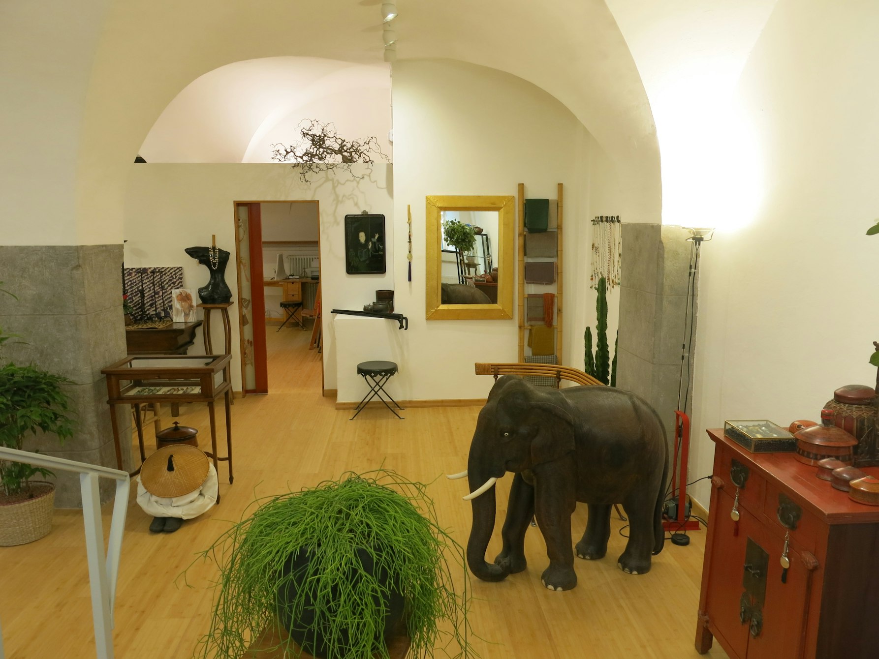 Jacopo ha salvato molti arredi dei precedenti negozi: pezzi storici non in vendita, come il grande elefante indiano in legno massiccio e avorio su cui si arrampicava da bambino. E poi le scatole afghane, i mobili laccati cinesi, le perle yemenite trasformate in portachiavi che si lucidano al tocco. Ogni collezione, che può variare da quindici giorni a tre mesi, include un centinaio di pezzi, con micro-collezioni più ridotte di 7-8 pezzi, sempre coerenti con l'ambiente del negozio.