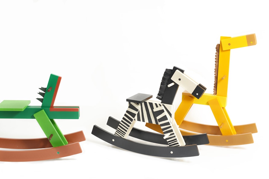 Uno dei progetti che porterà a Napoli è Cavalcade (2016), una serie di animali a dondolo prodotti in autoproduzione. Nati da un singolo asse di legno, questi oggetti giocano sulla sintesi tra design grafico e struttura fisica, evocando con pochi tratti forme riconoscibili: cavalli, giraffe, coccodrilli. Ogni elemento è progettato per essere semplice da realizzare, resistente e aperto all’interpretazione. Con Cavalcade, Boscardin dimostra che un buon progetto può nascere anche senza grandi mezzi, con creatività e spirito pratico.