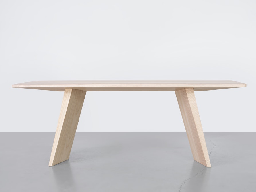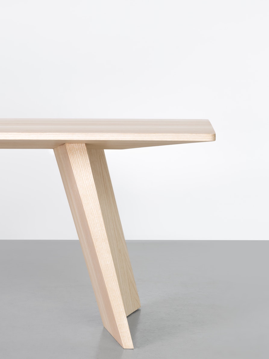 Tutti gli elementi del tavolo sono caratterizzati da una riduzione progressiva dello spessore, che conferisce al volume un profilo dinamico e contemporaneo. L’angolazione degli incastri genera un raffinato gioco di luci e ombre, aggiungendo profondità visiva alla sua forma minimale.