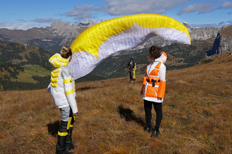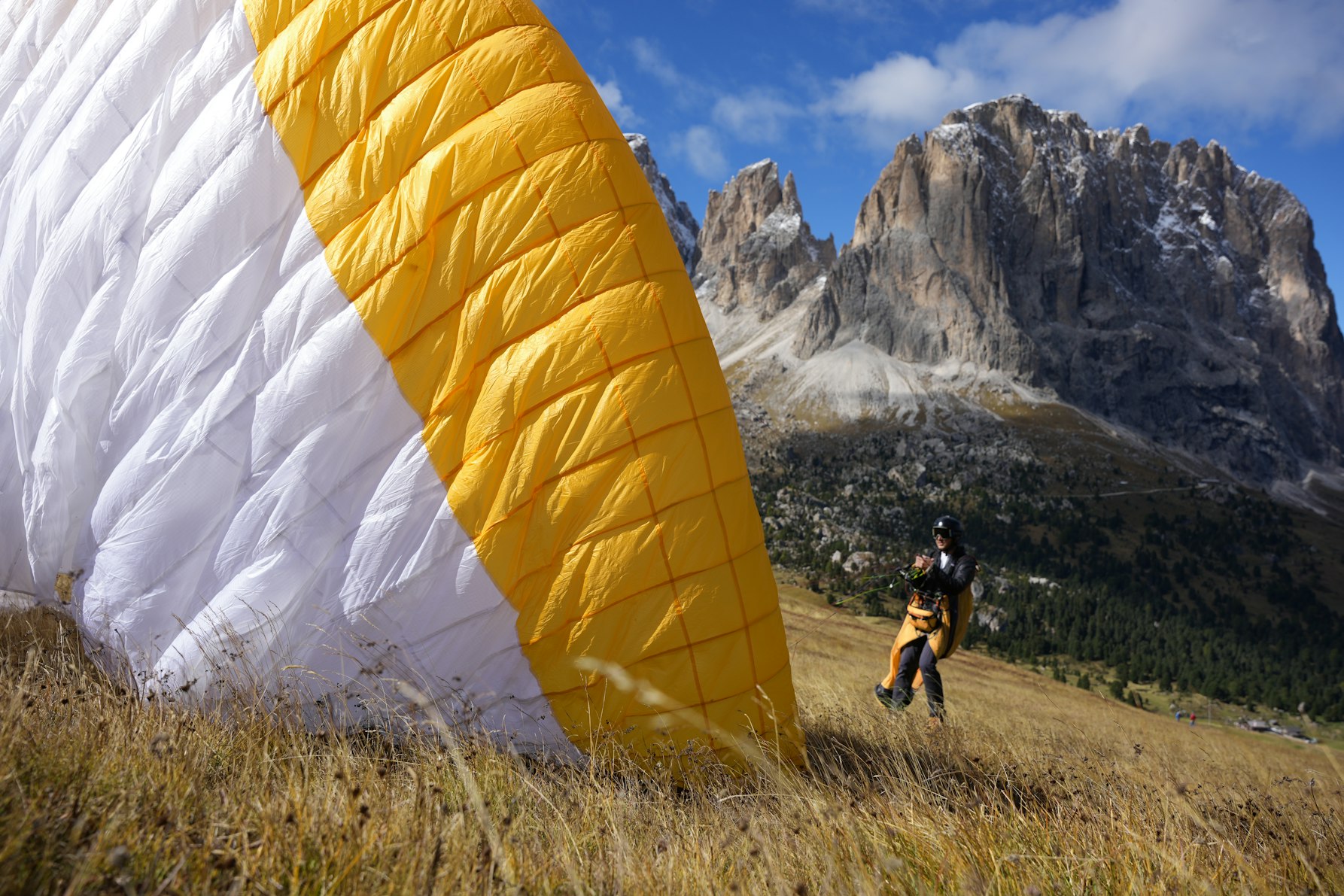 Siamo abituati a vedere i parapendio volare indisturbati in cielo ed è quindi difficile rendersi conto di quando siano grandi questi tessuti. Quanti prodotti idealmente riesci a realizzare con un parapendio e come funziona il processo creativo?