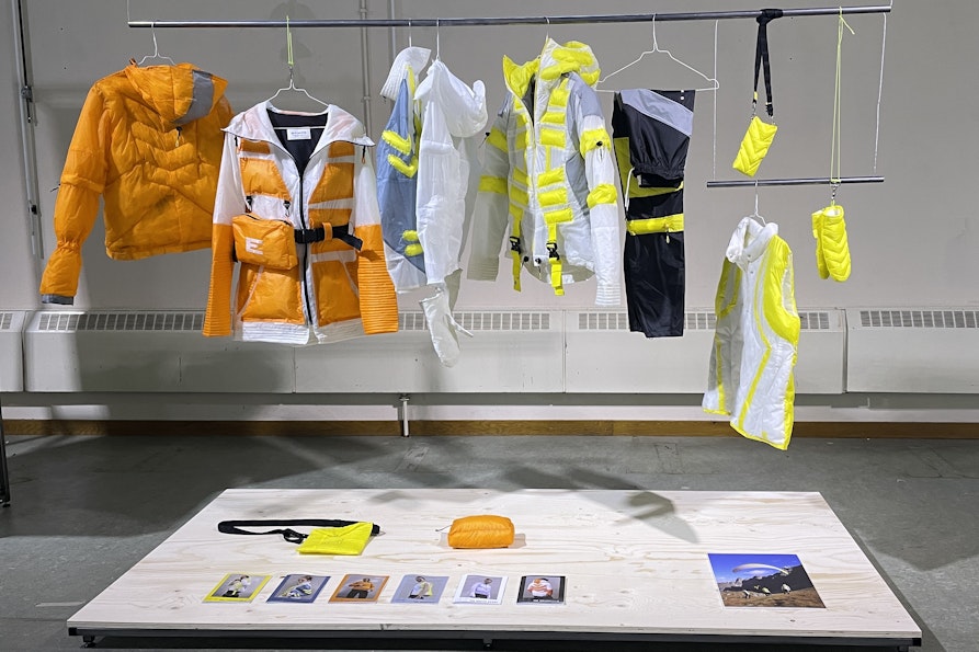 L’interesse per il materiale è nato un po’ per caso durante il periodo Covid, quando eravamo tutti costretti in casa e non c’era molta possibilità di acquistare prodotti e materiali nei negozi, e bisognava prediligere quello che c’era a casa. Alcuni amici avevano dei parapendio usati o rotti, ormai non più utilizzabili per il volo e ho deciso di provare a recuperare il tessuto per creare qualcosa. Il primissimo esperimento è stato un bucket hat. Quando poi ho dovuto scegliere l’argomento della mia tesi, non ho avuto dubbi: ho recuperato questo materiale e iniziato a progettare giacche outdoor. Per il progetto, scelsi il nome di ALPINISTA, combinando “alpino” alla desinenza “ista” di fashionista: volevo creare prodotti in grado di connettere la mia montagna alla città moderna in cui abitavo, ragionando su forme e colori che potessero comunicare sia la dinamicità e l’adrenalina degli sport d’alta quota, ma anche un lato più fashion e contemporaneo.