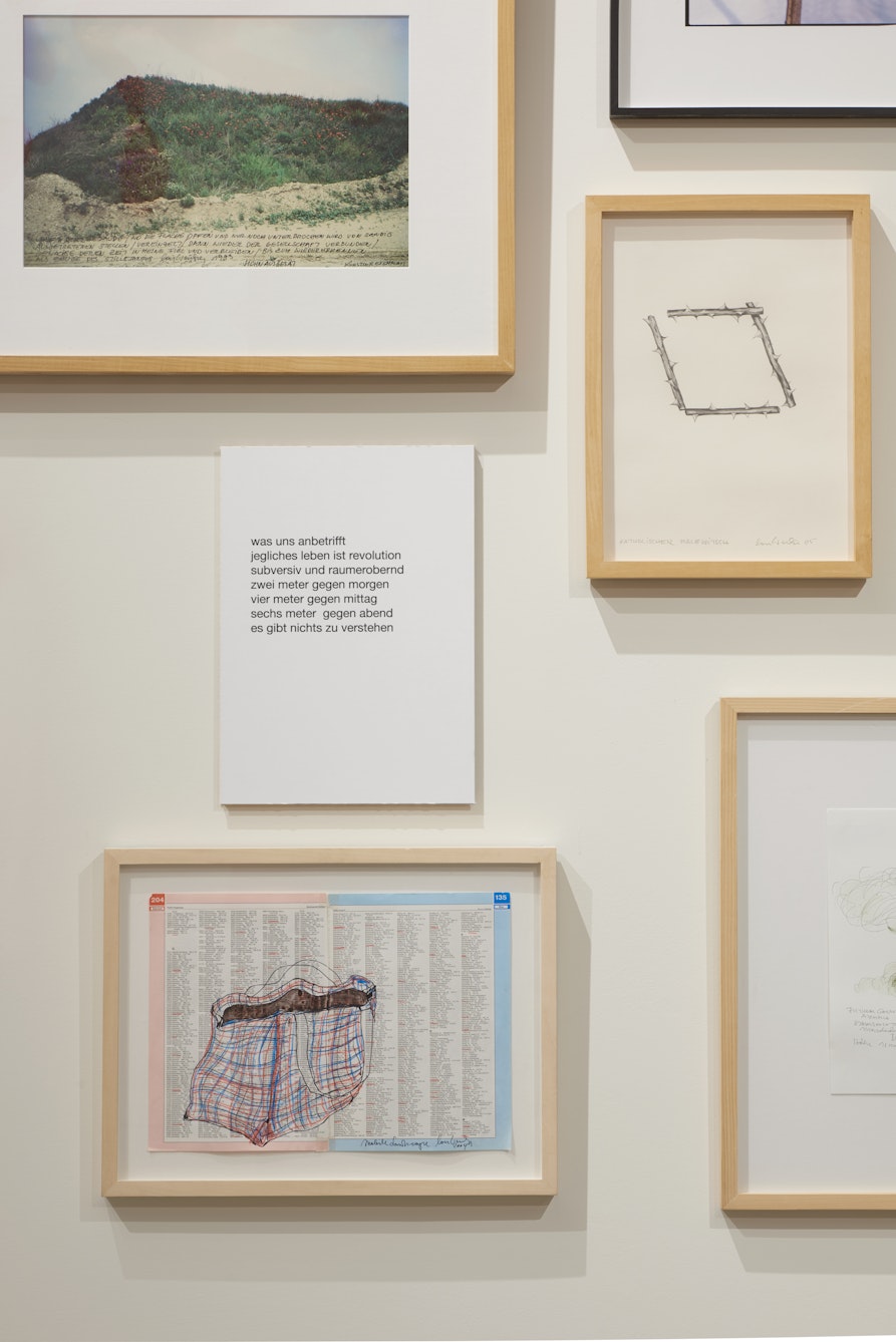 Ja genau, das war ganz toll, weil Franziska ihn ja auch während seines Lebens in seiner Arbeit immer begleitet und unterstütz hat. Wir wollten ganz bewusst Arbeiten aus allen Jahrzehnten zeigen, von 1970 bis zu seinem Tod 2020. Außerdem sind auch viele diverse Medien, wie oben bereits erwähnt, vorhanden. Ich selbst empfinde das Werk von Lois Weinberger als ein Großes und Ganzes, wer über eine Arbeit den Einstieg findet und den (so sagt seine Frau Franziska) ungewollten bzw. natürlichen Wortwitz und Sarkasmus darin versteht, wird sich so schnell nicht mehr aus dem Bann herausziehen können.