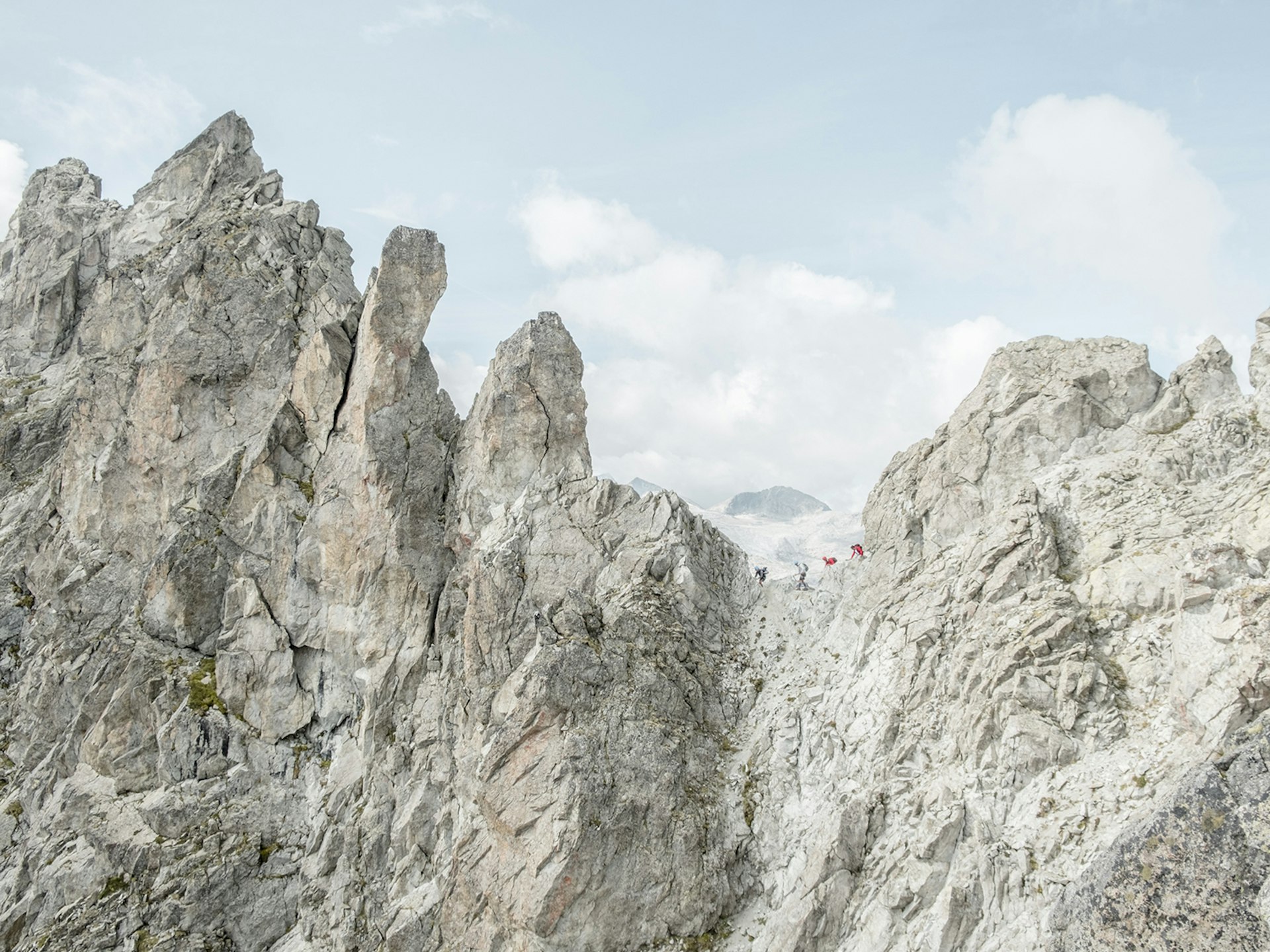 "Migliore" presuppone una superiorità estetica; preferisco parlare di scatto "emotivamente migliore". Un'immagine a cui sono particolarmente legato è la foto di una forcella sul Sentiero dei Fiori, l'ex sentiero di arroccamento della prima linea italiana, in zona Presena, un luogo oggi molto frequentato. Lo scatto mostra una cresta montuosa con uno stretto spacco attraverso il quale si vedono le cime di un ghiacciaio; la forcella è attraversata da due o tre alpinisti in miniatura con l'attrezzatura da ferrata, tutti vestiti di colori sgargianti. La foto, scattata nel 2018, è stata ottenuta con grande difficoltà arrampicandomi in una posizione scomodissima e pericolosa per avere la prospettiva desiderata. Questa immagine trovo racchiuda il messaggio critico del progetto. Un altro scatto significativo è la foto di Conca Presena con una grande pietra in mezzo che crea uno schiacciamento dei piani. "Tapum" mi è entrato sottopelle perché è legato alle montagne del cuore, quelle di famiglia: c'era la condivisione con mio nonno, a cui raccontavo ciò che vedevo riportandogli una montagna che lui non poteva più vivere e vedendo la sua gioia nel vedere quel seme sbocciato nel nipote. Inoltre sentivo ancora il disagio, la paura e la tensione delle sofferenze depositate su quelle pietre della Grande Guerra, proiettandomi indietro per immaginare l'esperienza di mio bisnonno Gino.