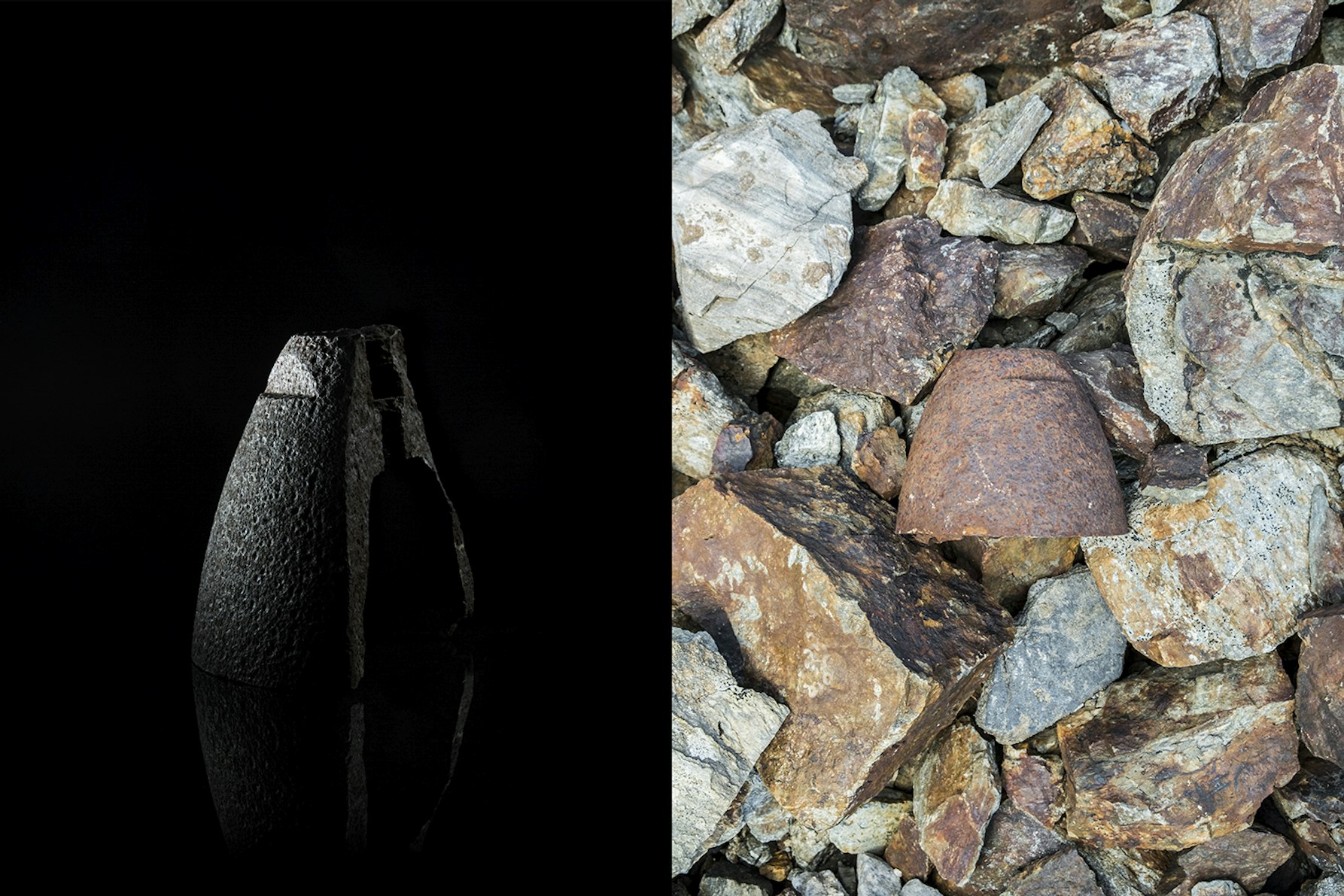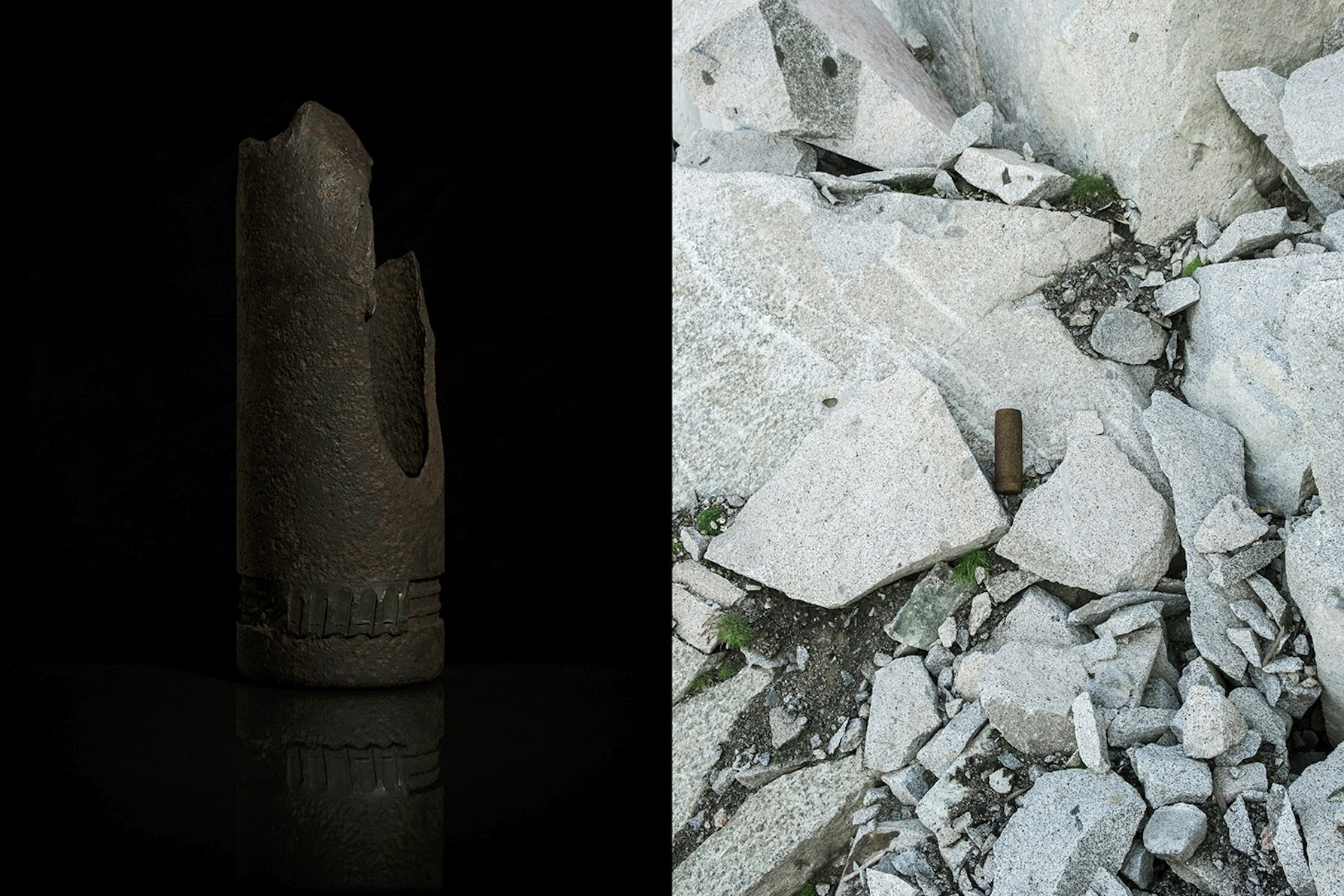 Una è una foto di reperti sulle pietre, l'altra lo scatto di un Weimaraner grigio super atletico che scende dalle rocce, in un luogo in cui sono morte molte persone, con il padrone appena visibile che tiene il guinzaglio rosa. Nel mezzo c'è tutta la storia che è passata, la gente caduta in guerra, le memorie di chi ha provato a raccontare. C'è una razza umana che si è dimenticata molti insegnamenti, scordando il significato della conquista fisica della montagna arrivando in seggiovia. Il contrasto è tra gli uomini che cento anni fa soffrivano in montagna per sopravvivere e la montagna di oggi, dove larriva a 3.000 metri gente in infradito per farsi il selfie, con il cane d'allevamento che fa i suoi bisogni sulle rocce dove un ragazzo si era accasciato a morire.