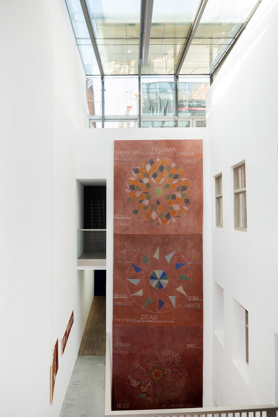 Earthly Communities schließt bei freiem Eintritt am Sonntag, 12. Oktober mit einer Finissage und einem vielseitigen Programm: Um 14:00 gibt es einen geführten Rundgang durch die Ausstellung mit den Kurator:innen Lucrezia Cippitelli und Simone Frangi. Um 16:00 wird der Film Walking and Singing Endangered Worlds der peruanischen Künstlerin Eliana Otta gezeigt, deren Arbeit Ökologie, Feminismus und eine kritische Auseinandersetzung mit dem Neoliberalismus verbindet. Der experimentelle Film entstand in Zusammenarbeit mit indigenen Klangkünstler:innen, Dichter:innen und Maler:innen und kombiniert innovative 360°-Videotechniken mit traditionellen Animationen. Der Abend endet mit dem mit dem DJ-Set Mishu Tinkuy von Condoii, einem italo-ecuadorianischen DJ und Sounddesigner, der gerade in Mailand lebt und mit Anden- und Afro-Sounds experimentiert.