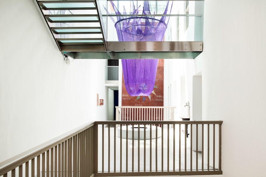 Auf drei Stockwerken zeigt Earthly Community die Kunst von Minia Biabiany, Marilyn Boror Bor, Carolina Caycedo, Luigi Coppola, Étienne de France, Alexandra Gelis, Mazenett Quiroga, Eliana Otta, Amanda Piña, Sallisa Rosa und Samuel Sarmiento. Die Arbeiten thematisieren die invasive Wirkung des europäischen Imperialismus in den Bereichen Landwirtschaft, Archäologie und Extraktivismus und weisen dabei auf von Kolonialität geprägte Machtstrukturen hin.