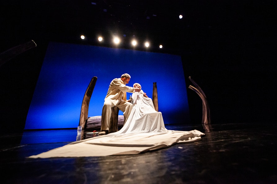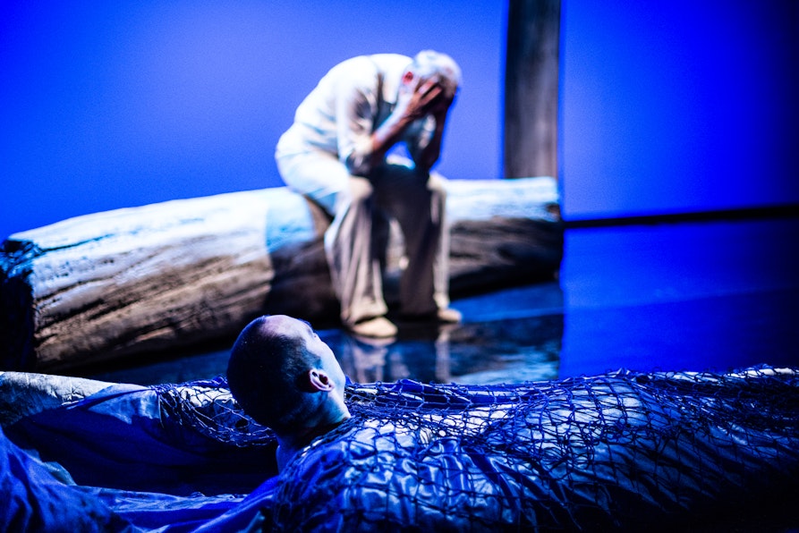Nata da un percorso di improvvisazione tra l’attore del Teatro la Ribalta Mathias Dallinger e suo padre (in scena interpretato da Michele Fiocchi), la produzione esplora il complesso e profondo rapporto padre-figlio in tutto il suo crudo realismo, attraverso la lente della storia di Pinocchio e Mastro Geppetto. All’interno del ventre della balena, uno spazio onirico di raccoglimento e riflessione, i protagonisti incontrano personaggi come il grillo parlante, la fata turchina, il gatto e la volpe (interpretati da Sara Menestrina e Stefania Mazzilli Muratori), e raccontano il processo di decostruzione e ricostruzione del loro legame, tra scontri e silenzi, incertezze e conquiste. È la rappresentazione profondamente umana del processo di accettazione reciproca tra un padre e un figlio: un percorso di scoperta, di crollo delle aspettative e di meravigliosa comprensione di sé e dell’altro. Lo spettacolo affronta alcuni dei temi più cari alla compagnia, la cura, il desiderio, il pietismo, tentando di modificare lo sguardo di chi assiste. Il tema del corpo è presente in maniera dirompente: il teatro è una questione fisica, e questo lavoro ne è la dimostrazione, i corpi vengono mostrati, toccati, spostati, svestiti e rivestiti senza paura. Ci insegna che sotto i riflettori tutto è visibile, nudo, esposto, dai sentimenti alla materia umana.
