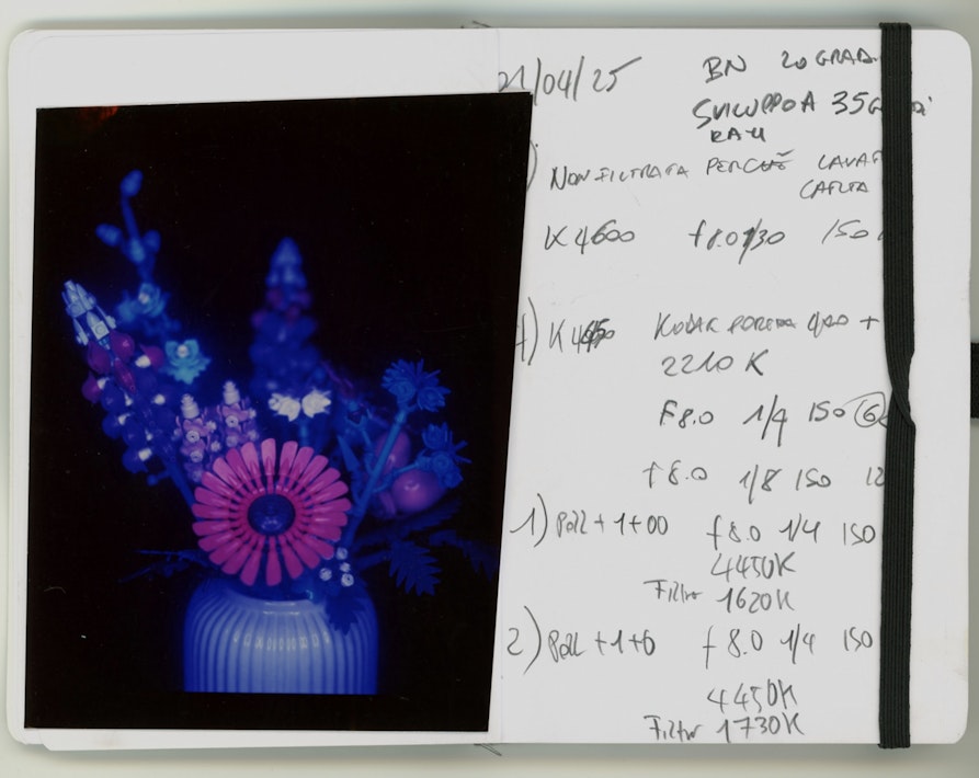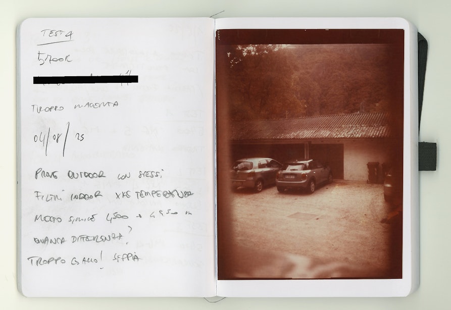 Qui la sperimentazione avviene ricorrendo ad un procedimento tecnico ancora più particolare in cui utilizziamo della carta fotografica colore, concepita per la stampa con ingranditore e con l’uso della luce a tungsteno a precisi gradi Kelvin. La grande difficoltà di questo procedimento è che ci troviamo ad utilizzare questa carta in macchina con luci completamente differenti da quelle per le quali è nata, cosa che richiede tutto un sistema di filtraggio specifico, con filtri magenta, giallo ecc.. per arrivare dove vogliamo. In studio questo procedimento lo praticano più fotografi ed è abbastanza facile da riprodurre, mentre se ci si sposta in ambiente esterno, con tutte le condizioni di luce possibile, diventa molto più complesso. Ci stiamo quindi concentrando anche su questa sperimentazione che ci appassiona molto: è un lavoro lungo ed impegnativo, ma non dubito che prima o poi raggiungeremo gli obiettivi che ci siamo prefissati.