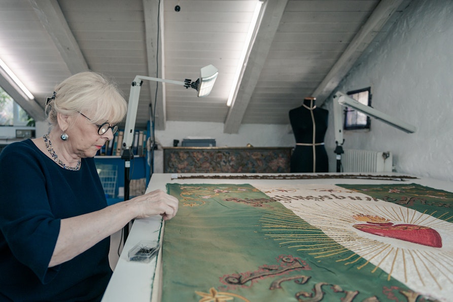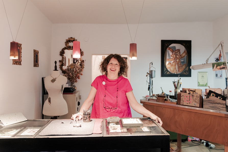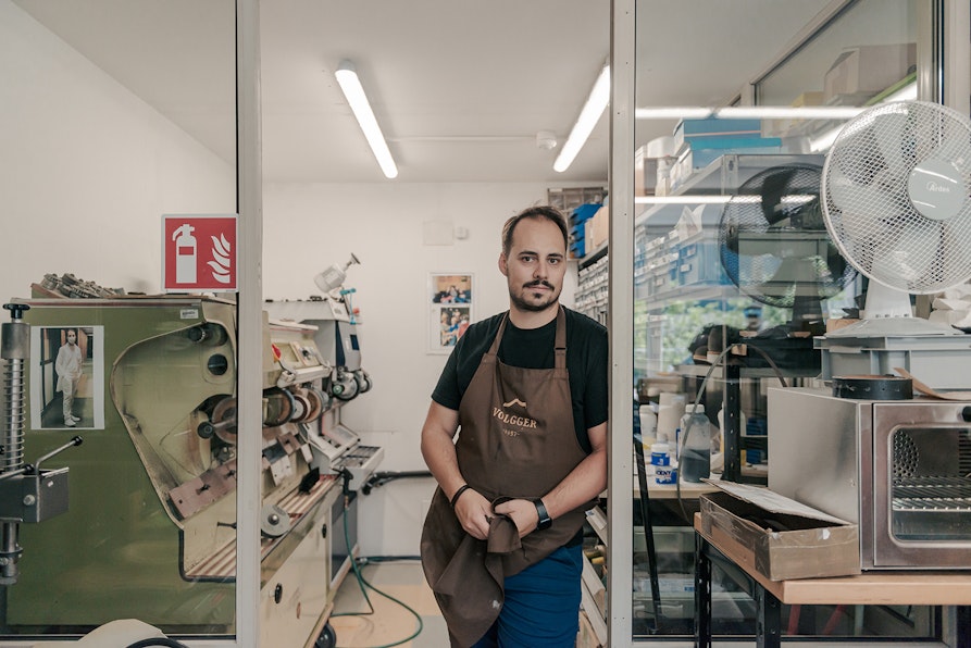Ma ecco chi sono gli otto protagonisti del racconto fotografico di Corrent, scattato in altrettanti luoghi sul territorio altoatesino, dagli atelier di Bolzano ai laboratori di Merano, fino alle botteghe della Val Passiria. Franz Haller custodisce l’arte della lana cotta, Simon Volgger realizza calzature ortopediche su misura, Alois Thaler ricama con piume di pavone e Irene Tomedi si dedica al restauro tessile. Il laboratorio Vetroricerca lavora con il vetro in dialogo con l’arte contemporanea, mentre la stilista Violeta Nevenova crea abiti dal gusto teatrale e punk. Sarah Valier, orafa, combina materiali nobili e frammenti di recupero, e Giorgio Seppi trasforma oggetti quotidiani in lampade e installazioni luminose.