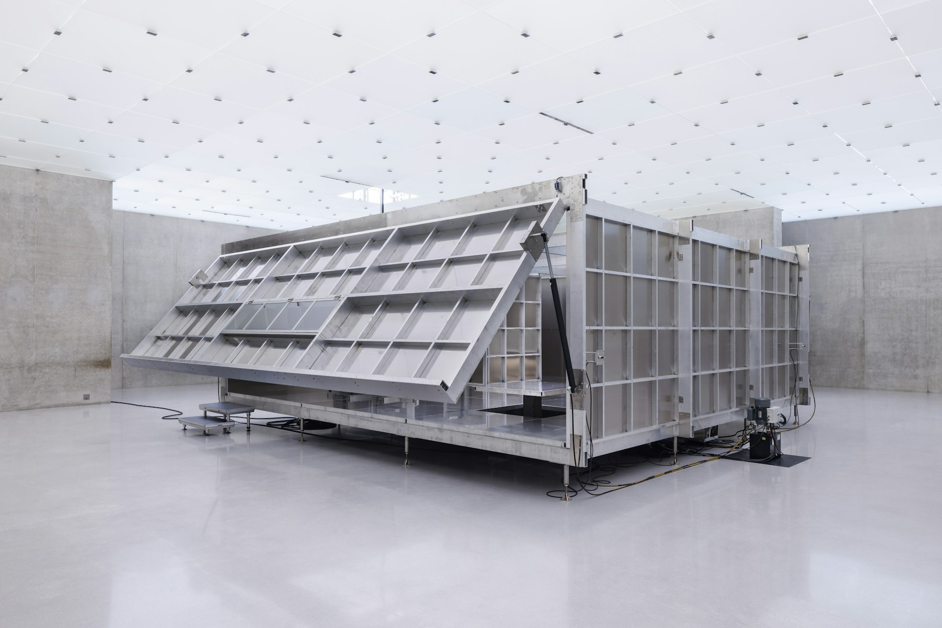 Darüber, dass im KUB Kunst gezeigt wird, die vor allem für Andere da sein wird. Auch, wenn die modulare Künstler*innenresidenz, eine riesige Installation im 3. Stockwerk des Kunsthauses, aus kühlem Aluminium sich erst einmal wie eine Art „Parasit“ im Ausstellungsort eingenistet hat. Benutzt werden darf ihn jetzt schon jeder und jede, der und die die Schau besucht. Nur besitzt werden, wird das Häuschen nie. Das Werk wird nicht verkauft. Also wohl höchstens geliehen. Was das heißt? Es bedeutet, nicht mitzuspielen im Game. Kein Kunstmarkt. Kein Renommee. Ist das dann noch Konzept oder schon Haltung? Oder bloß schnöder Verzicht? Was wir nicht vergessen dürfen: Ohne Namen und Biografie fallen für den*die Urheber*in der Werke ja auch die Meriten weg, die mit einer Ausstellung in einem renommierten Haus einhergehen.