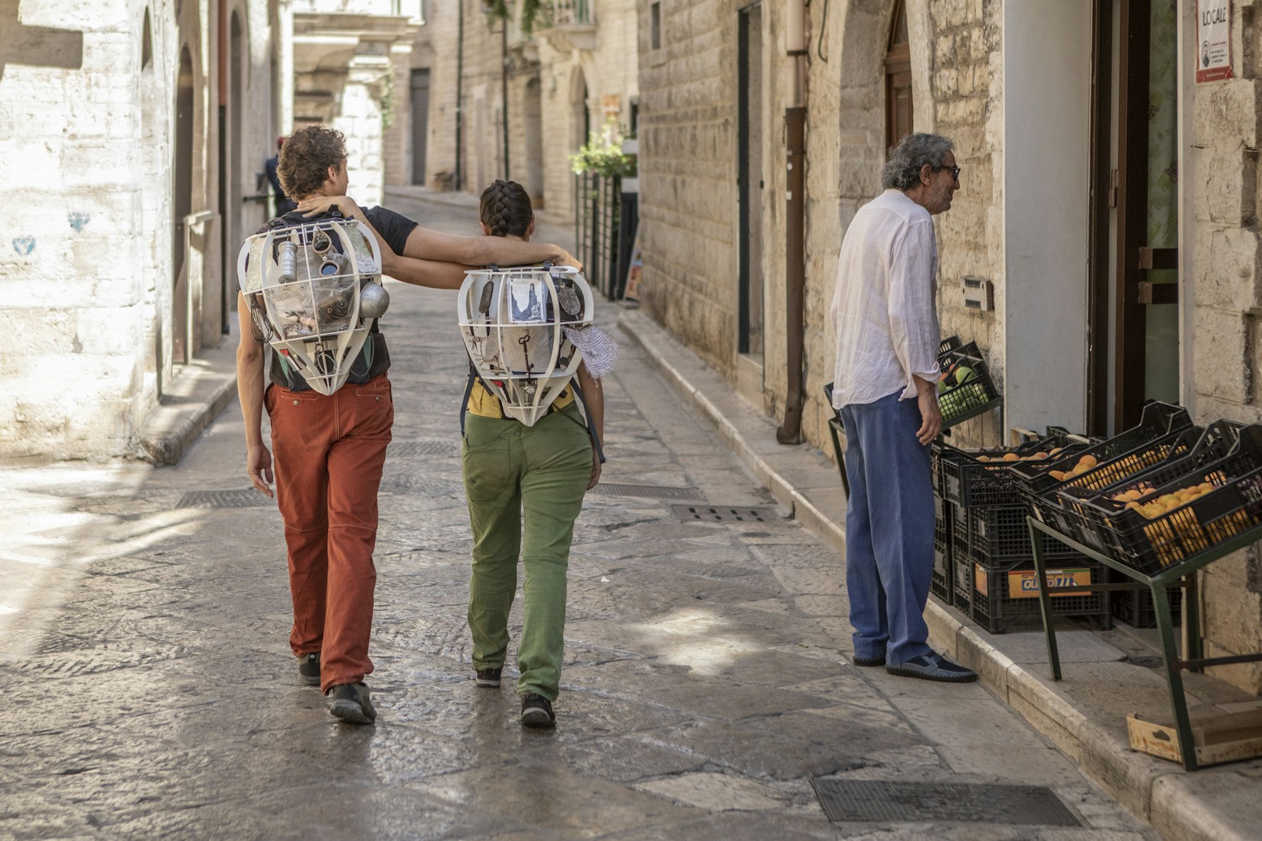 Abbiamo capito che il luogo è vivo e cambia di continuo: di giorno è una cosa, di sera un’altra, di notte un’altra ancora. Questo ti destabilizza ma, allo stesso tempo, ti salva. Da lì è nata la nostra idea di una presenza “permeabile”: non portiamo qualcosa nel luogo, ma lo agiamo insieme e lo trasformiamo attraversandolo. Anche gli “incidenti” — una bici che passa, qualcuno che chiede “cosa state facendo?” — diventano parte della drammaturgia: ritmo, musica, vita che entra nello spettacolo.