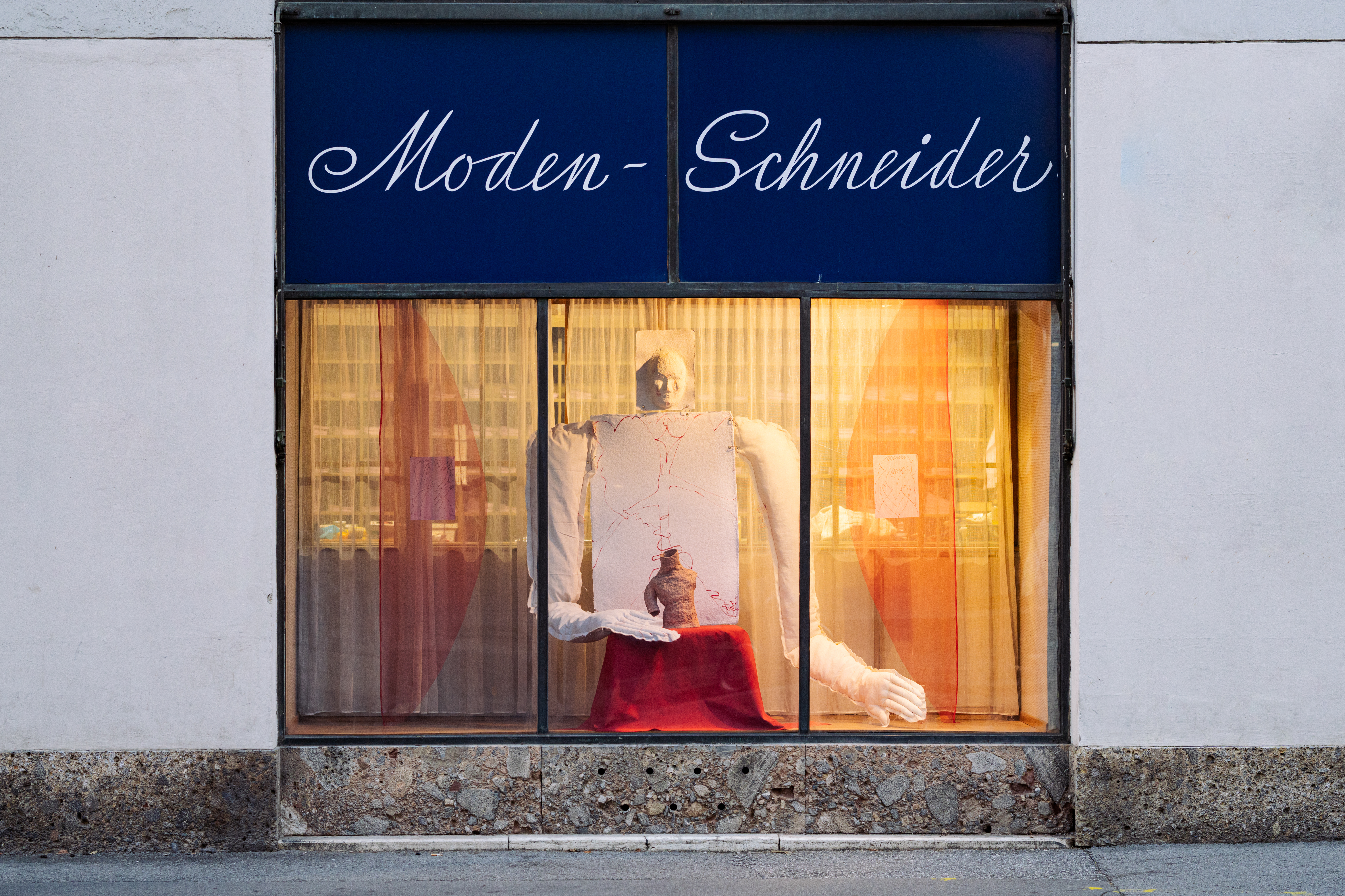 Die Premierentage sind für die Festivalzeit im Leerstand in der Innsbrucker Museumstraße daheim. Der Premierentage-Offspace wird von Margo Sarkisova bespielt. © Dino Bossnini