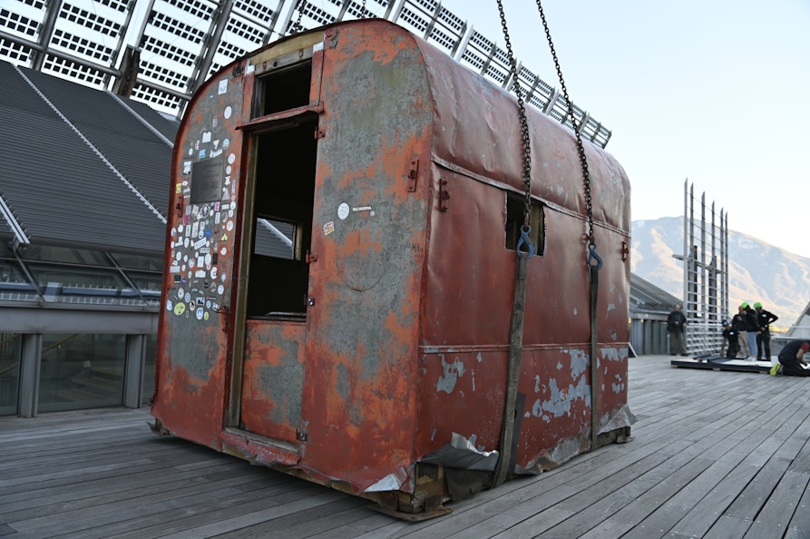 C'è un'epica minimalista che lunedì 3 novembre ha fatto tappa al Muse di Trento, portando con sé l'odore pungente delle lamine zincate e il silenzio assordante delle alte quote. Non un fossile monumentale né un meteorite cosmico, ma un monolite rosso e ruggente, testimone di oltre mezzo secolo di notti gelide e albe trionfali: il Bivacco Fiamme Gialle di Cimon della Pala. Un oggetto di culto per gli alpinisti che, con un volo scenografico in elicottero e un'impeccabile manovra di gru, è atterrato sulla terrazza panoramica del Museo delle Scienze di Trento, dove è ora diventato parte dell'allestimento permanente.