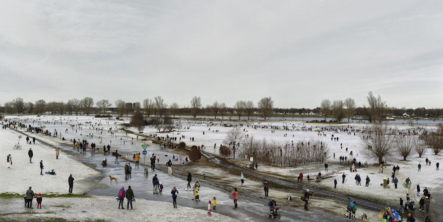 In questo caleidoscopio di gesti si inseriscono in modo tagliente due capolavori che fanno da ponte tra storia e presente: la medievale "Trappola per uccelli" di Pieter Brueghel il Giovane, una glaciale allegoria dell'incertezza del destino immersa in una scena di vita su ghiaccio, e la fotografia monumentale "Eisläufer" (2021) di Andreas Gursky, visione totale e disincantata della collettività sul ghiaccio durante un lockdown, specchio della nostra condizione contemporanea.