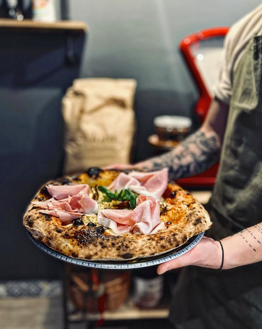 L'identità estetica post-lockdown porta invece la firma di Federico, il figlio "esteta e buongustaio", e di Fabiana, co-creatrice. "Dovevamo far capire alla clientela che era cambiato qualcosa: non potevamo solo mettere l'insegna "pizzeria" - racconta Federico -. Ci siamo innamorati di questo azzurro dopo un viaggio a Capri; uno scorcio di mare che abbiamo mutuato come spunto di design qui a Bolzano". L'arredo è un mix di scelte audaci: tinte accese, maioliche mediterranee, teste di moro e pezzi vintage scovati nei mercatini. "Il locale oggi ha un'identità propria, con contrasti, neon moderni e arredi vintage - prosegue Federico -. L'impatto è forte, con tante cose da fotografare, ed è oggettivamente uno stile che oggi si direbbe instagrammabile, che è fondamentale".