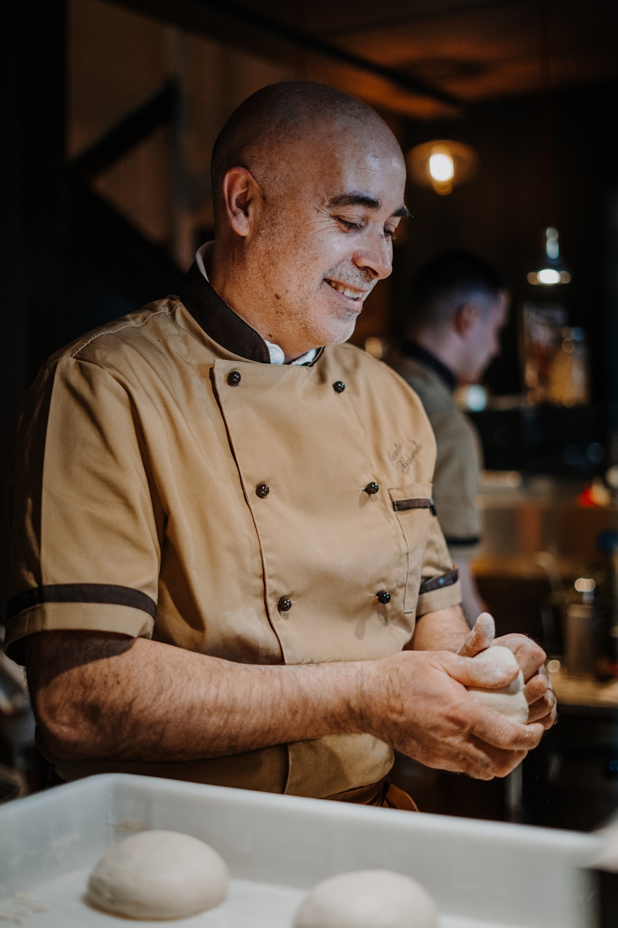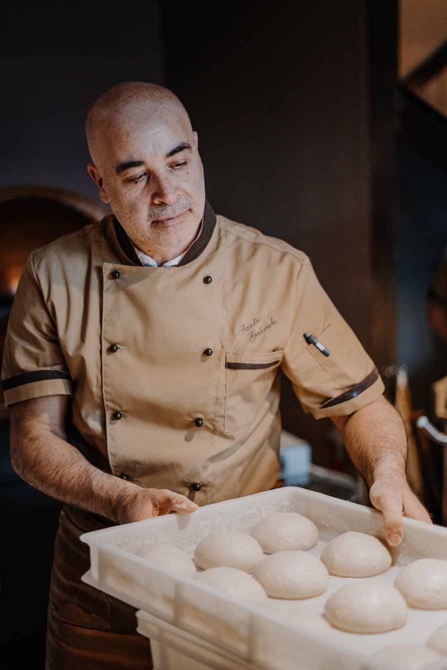 La curiosità lo ha portato a Napoli per mesi, per studiare i processi chimici e la lievitazione che gli artigiani locali non riuscivano a spiegare. "Sulla parte "meccanica" ero già pronto, ma volevo cambiare il mio approccio. Napoli mi ha aperto gli occhi su come trattare l'impasto e scegliere il tipo di farina. Poi ho elaborato una filosofia e una tecnica mia: ecco perché oggi noi siamo diversi. Non siamo più bravi di altri, ma diversi sì". Questa "diversità" si traduce in una pizza contemporanea che si allontana dal disciplinare napoletano con l’aggiunta di farine integrali e una maturazione lunga, fino a trentasei ore.