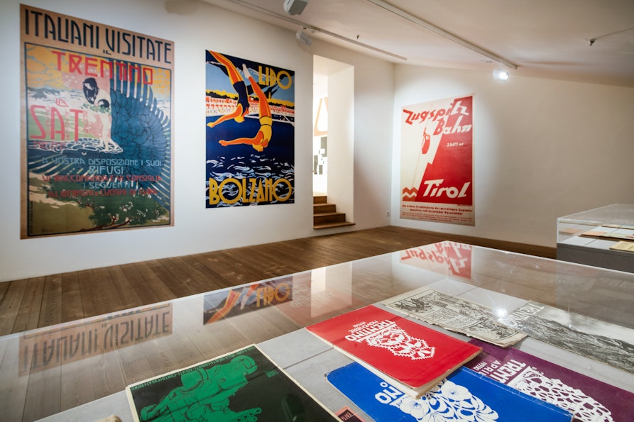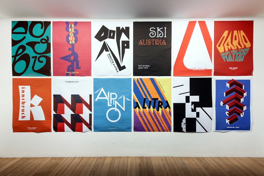 La prima sezione della mostra raccoglie materiali storici originali e riproduzioni che raccontano la varietà dei modelli visivi diffusi tra Trentino, Alto Adige e Tirolo in quell’epoca, con l’intento di mettere in luce un panorama vario, composto anche da autori meno conosciuti ma comunque capaci di interpretare con personalità e talento le esigenze della grafica del tempo. Tra i materiali esposti, la rivista trentina Enrosadira, ma anche libri, opuscoli e cartoline realizzate tra gli altri anche da Fortunato Depero, Franz Lenhart, Luigi Bonazza, Oswald Haller, Anton Hofer, Willhelm Nikolaus Prachensky. Questo opere grafiche ci restituiscono un’epoca storica dalla produzione visiva sofisticata, sperimentale e radicalmente indipendente. Nonostante l’assenza di grandi fonderie o poli editoriali di rilievo nel territorio di interesse, questi autori hanno saputo inventare alfabeti, segni e stili, dando vita a un modernismo alpino originale e dalla espressività coraggiosa che, anche a distanza di un secolo, risulta assolutamente moderno. Il terzo piano della Kunsthaus è interamente dedicato alla sezione principale della mostra, ovvero quella dedicata ai progetti degli studenti della Facoltà di Design e Arti, che hanno saputo rileggere e ridare nuova luce a un’identità e un’eredità storica fino ad ora inesplorata.