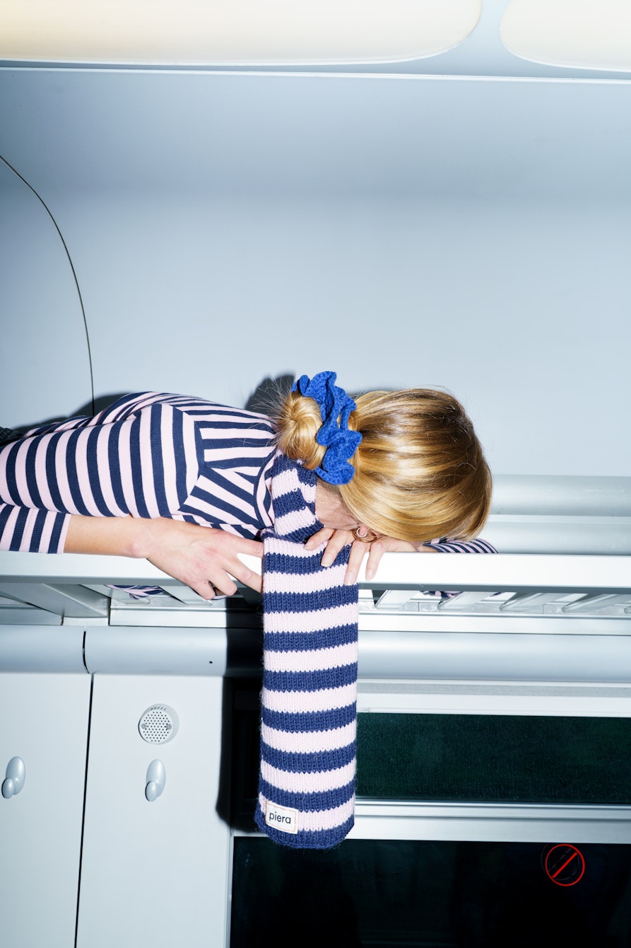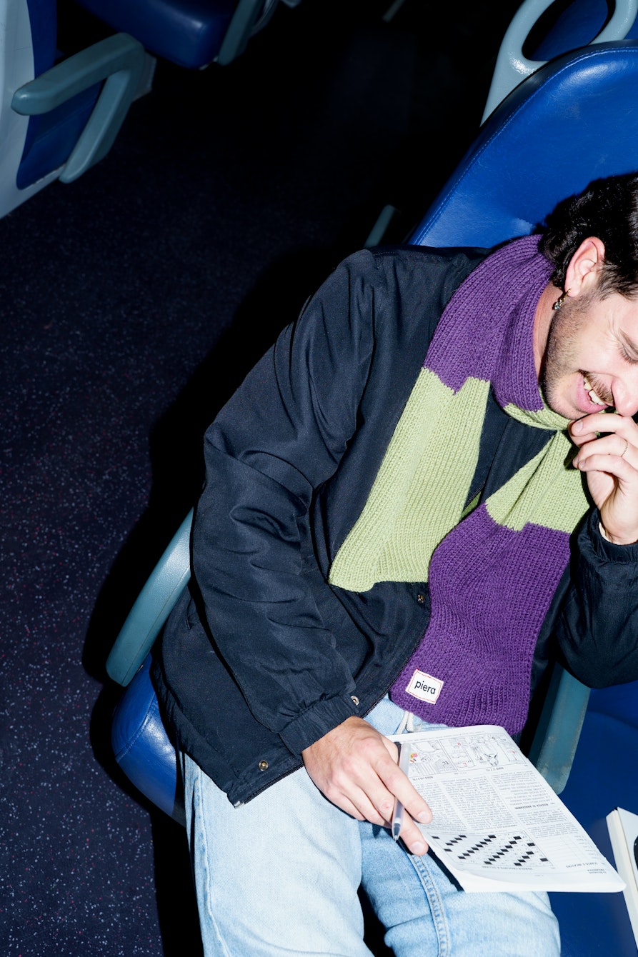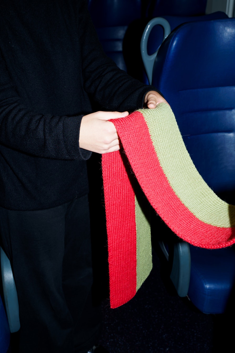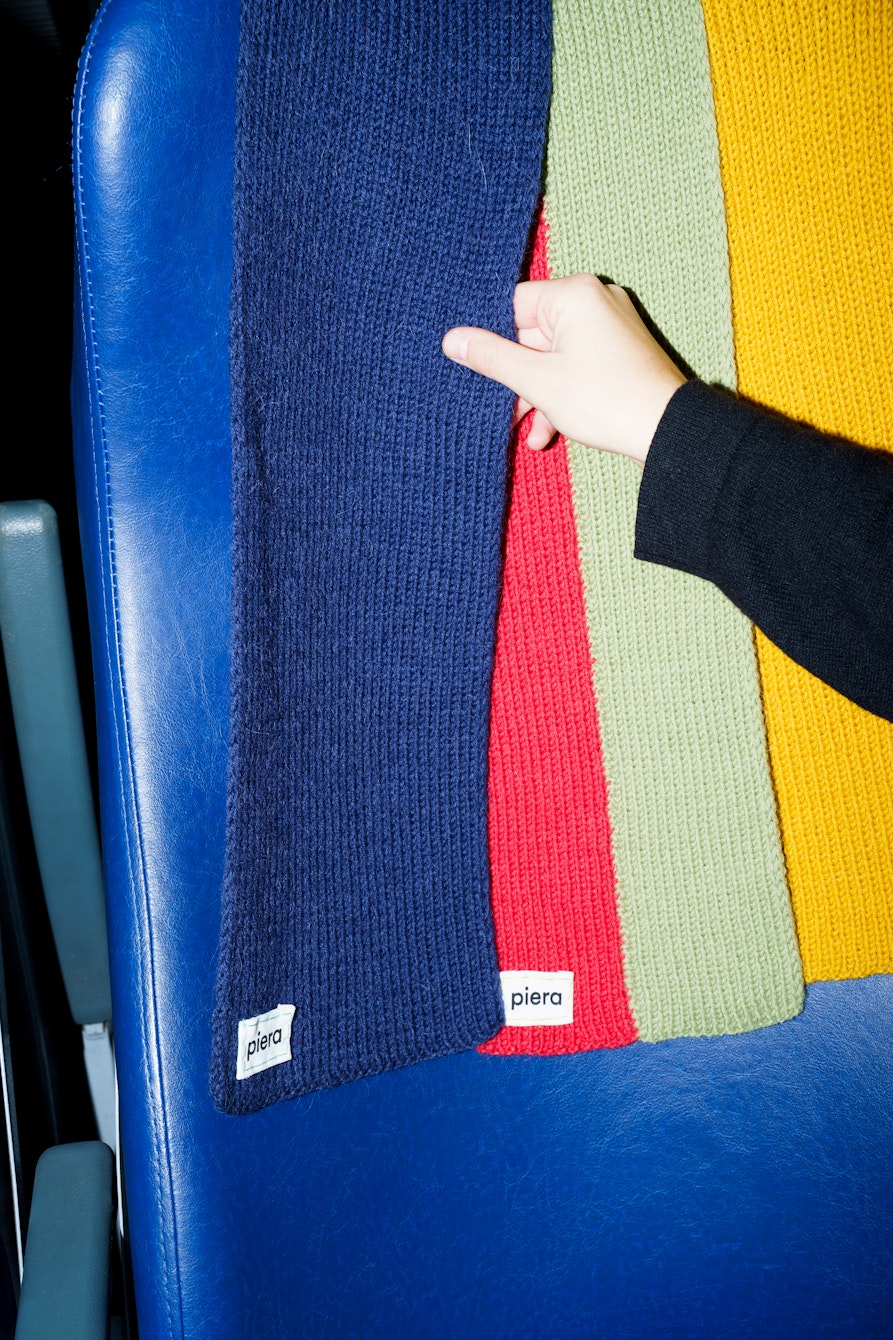 Nello spazio ristretto di un vagone del treno si può facilmente osservare tutta la commedia umana. Studenti fuori-sede, turisti e non, bambini in gita, lavoratori: tutte persone che con molta probabilità non vedremo più e portano con sé, nascosto, un bagaglio di vita, sentimenti ed emozioni. L’ansia per un esame all’università, l’attesa, la felicità, la stanchezza dopo un giorno infinito o la disillusione. Per ingannare il tempo, c’è chi ascolta musica, chi si abbandona ai pensieri guardando fuori dal finestrino, chi legge, chi lavora al pc e chi fa scrolling compulsivo sul telefono; chi fa messaggi audio che sembrano podcast, chi fa conversazione con gli amici o col primo che capita. E poi c’è anche chi, sorprendentemente, lavora a maglia e, stazione dopo stazione, sciarpe coloratissime prendono forma. È questo il caso di Eleonora Todeschi, giovane trentina che si sposta quasi ogni giorno in treno e ha trovato un modo decisamente creativo e, se vogliamo, romantico, per dare ritmo al viaggio e trovare una valvola di sfogo alla quotidianità. La sua collezione di sciarpe in lana fatte a mano si chiama piera come la sua nonna, che le ha insegnato a sferruzzare e a cui è particolarmente legata. piera è un inno alla lentezza del lavoro manuale che si accosta alla lentezza del viaggio su rotaia. Quando le telefono per chiederle di raccontarmi del suo progetto, naturalmente mi risponde dal treno; ogni tanto la sento lontana e la sua voce di mescola con quella della registrazione di Trenitalia “Siamo in arrivo alla stazione di… In Kürze erreichen wir…”, ma la gioia con cui parla è contagiosa.