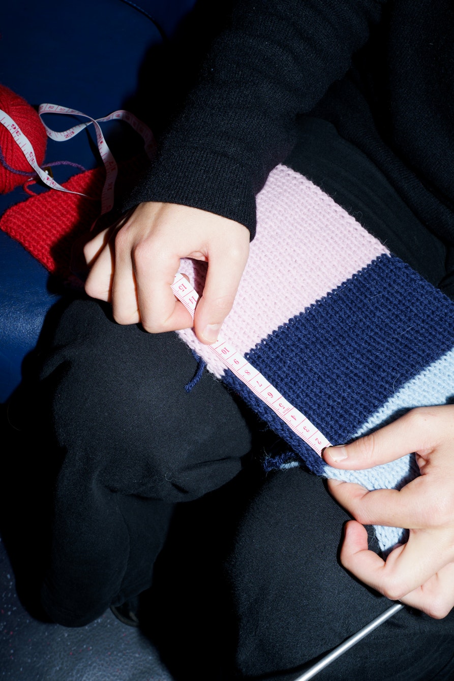 Raccontaci qualcosa in più di queste sciarpe rigate realizzate a mano. Dal profilo Instagram, ho letto che per realizzarne una, ci vogliono circa 30 mila punti e una media di 40 ore di lavoro, davvero impressionante.