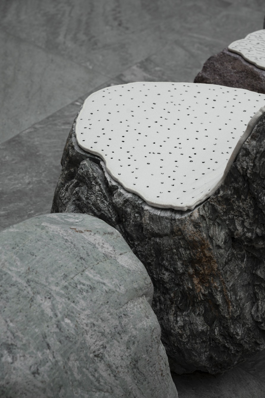 La loro installazione non si limita a arredare: ricrea un luogo di raduno, un ambiente in cui sedersi significa entrare in relazione con un patrimonio invisibile fatto di rocce, vento, piante e storie.