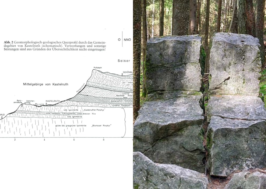 Il paesaggio che avvolge Castelrotto è una costellazione di presenze. Non solo rocce e strati di sedimenti, ma forme che da secoli vengono abitate dall’immaginazione. Sulle superfici dello Sciliar si depositano racconti antichi: storie di streghe che cavalcano il vento, di sedute di pietra che conservano il calore delle loro soste notturne, di spuntoni che vibrano come aghi rituali puntati verso il cielo. Qui la montagna è un archivio di leggende femminili, un altipiano sospeso dove la materia diventa mito.