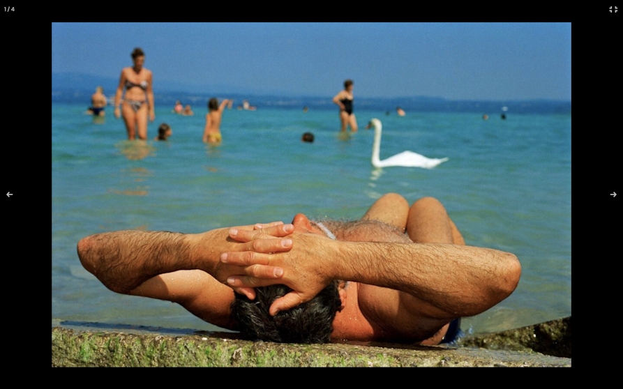 La passione di Parr per le spiagge e i litorali è stata la spina dorsale di una parte significativa della sua opera. L'ossessione, nata nel Regno Unito negli anni Settanta - dove l'autore notava la forte tradizione fotografica balneare e la vicinanza della costa - lo ha spinto a esplorare lidi in ogni angolo del mondo, dal Messico alla Lettonia, catturando con il suo tocco l’etica del "lasciarsi andare completamente". Il Lago di Garda, con il suo affollato microcosmo di vacanzieri, è rientrato presto in questa mappa di indagine fino a diventare il suo soggetto balneare prediletto. Il legame è saldo e documentato: il Mag, il Museo Alto Garda di Riva del Garda, conserva un significativo fondo fotografico di sue opere iconiche realizzate nel 1997 nell'ambito del progetto "Sguardi gardesani". Questo fondo si compone di quasi trenta immagini e testimonia come il museo, consapevole del contributo della fotografia d’autore alla conoscenza dei luoghi, lo abbia coinvolto in questa riflessione sul paesaggio contemporaneo.