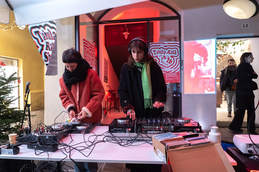 Ganz zentral, auf der Terasse: Cycles of Repair, wo Maximilian Stahl schraubt, erklärt, improvisiert. Sein Projekt ist eine mobile, gemeinschaftlich nutzbare Fahrradwerkstatt, die Reparaturwissen zugänglich machen und eine niedrigschwellige Reparaturkultur fördern soll. Zwei DJ-Sets später tanzt dieselbe Terrasse zu den Tunes von verovasko und giunai. Reparaturkultur als clubtaugliche Vorband – warum eigentlich nicht?