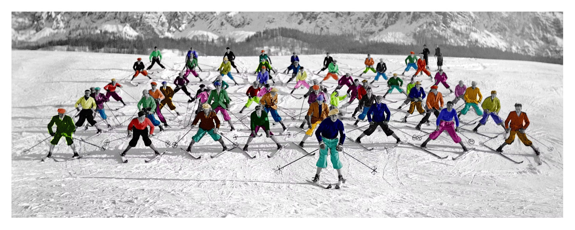 L’esposizione al Lumen è il cuore di una trilogia che in pieno fermento olimpico invernale unisce Cortina, Milano e le vette, ed è un invito a guardare oltre la crosta ghiacciata delle apparenze. La sezione "The Pioneers’ Passion" è un'operazione concettuale di rara potenza in cui Zardini attinge al monumentale archivio di famiglia ma non si limita alla contemplazione nostalgica: prende i pionieri, quegli uomini e donne che con rudimentali sci di legno e cinghie di cuoio "inventarono" il desiderio della neve, e li rigenera. Attraverso interventi cromatici pop, le immagini monocromatiche di inizio Novecento acquistano una vibrazione contemporanea. Non è un restauro, è una risurrezione: Zardini ci dice che quel coraggio pionieristico, quella capacità di sognare l'impossibile, è l'unica bussola valida per le sfide future.