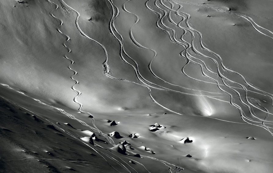 La ricerca si fa ancora più intima in "Tracce", dove l'autore abbandona la dimensione documentaristica per approdare alla Fine Art più pura. Per Zardini la neve non era solo un fenomeno meteorologico, ma "una tela d’artista pronta per essere utilizzata, che si lascia segnare, disegnare". In queste composizioni rarefatte, gli sciatori diventano "volontari o inconsapevoli autori" di trame che sormontano altre trame, in una mutazione perenne che riflette il dinamismo dello spirito alpino. È il punto d'arrivo di un percorso che ha visto Zardini passare dalle cronache di guerra delle Nazioni Unite alla contemplazione delle orme sul ghiaccio, senza mai perdere quell'uso originale della macchina fotografica capace di trasfigurare il reale in poesia visiva.
