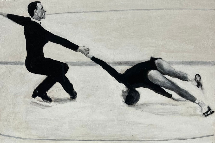 In questo senso lo sport, soprattutto quando è vissuto da spettatore, diventa “un segnalibro del tempo”. Attorno alle immagini dipinte da Tribuiani si infila la vita di chi le ha osservate: le opere diventano quasi un ritaglio, fuori dai margini del quadro si sente ancora l’eco di tutto quello che stava accadendo attorno. Le sue opere non parlano soltanto di ciò che accadeva in pista o sul ghiaccio, ma di tutto ciò che avveniva intorno, nella vita di chi assisteva. Da qui nasce quella che Buldini definisce “una sorta di poetica dell’effimero, una ricerca della bellezza nel momento in cui si dissolve”. La pittura diventa così “un atto di resistenza contro l’oblio”, un modo per tessere, “su quel fragile telaio evocato da Strindberg, una memoria nuova, dove il tempo non scorre ma si ripiega su se stesso, trattenendo per un istante ciò che è destinato a sparire”.