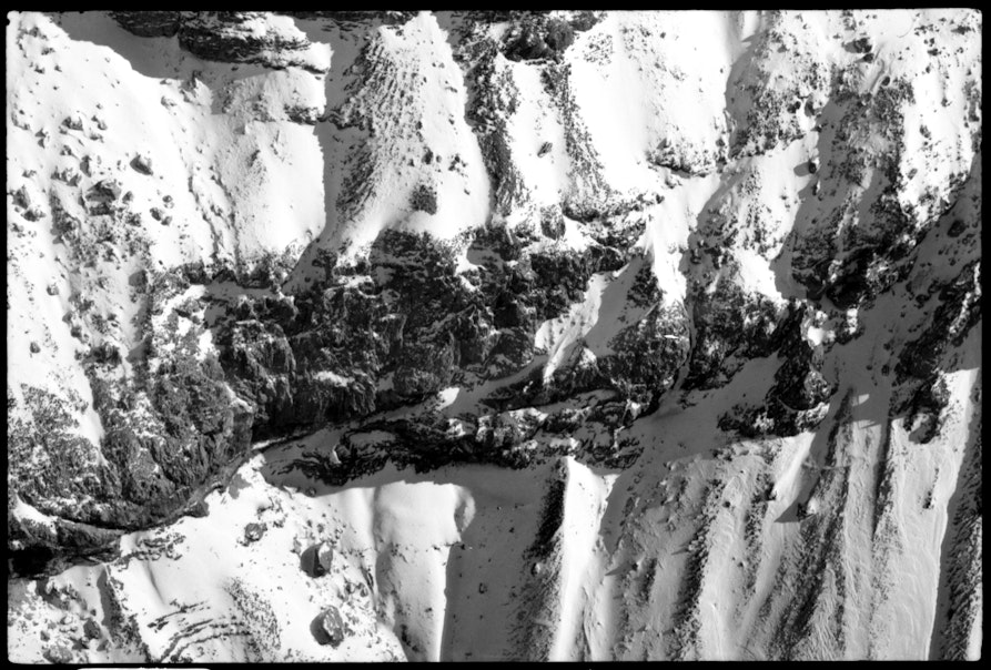 Dalla curiosità per l'ignoto e da un profondo omaggio ai fotografi del passato. Mi ha sempre affascinato pensare ai pionieri che salivano con trenta chili di attrezzatura per documentare spazi allora inviolati. In un'epoca di tessuti tecnici ultraleggeri e fotocamere digitali tascabili, io ho voluto andare nella direzione opposta: faticare, appesantirmi, sentire il peso della storia sulle spalle per cercare di creare qualcosa che avesse lo stesso sapore di verità e di sforzo di quelle immagini d'epoca.