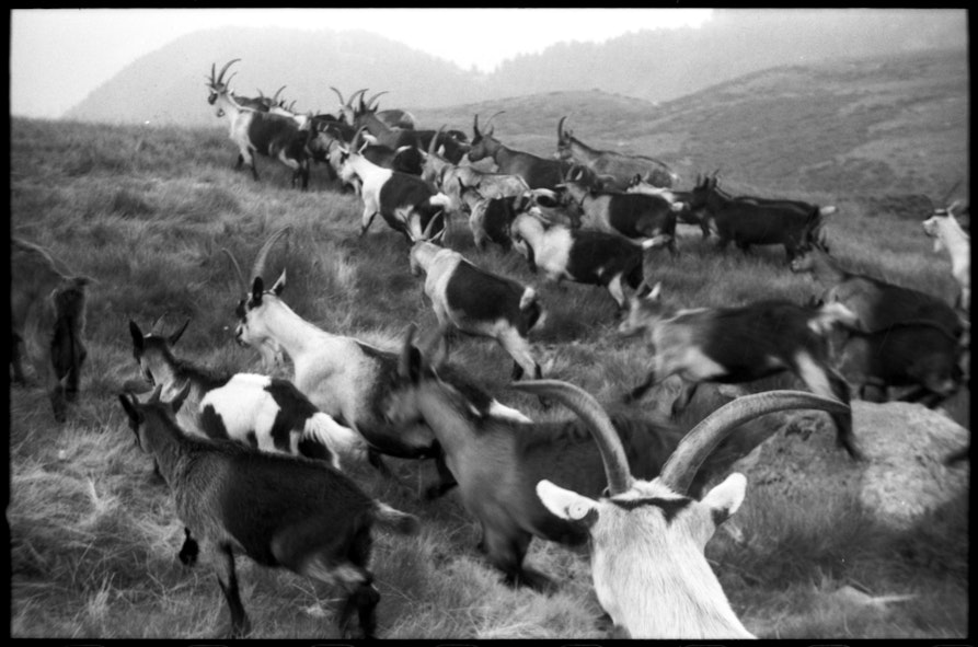 Da un lato c'è l'immagine scattata sulla Cima di Barba d’Orso, in Val Martello: un paesaggio drammatico a tremila metri, fatto di contrasti netti tra roccia, neve e nuvole. È una visione aperta, priva di presenza umana, che restituisce la fatica del raggiungimento e la solitudine della quota. All'estremo opposto colloco lo scatto a un gregge di capre in Val Sarentino. È una foto terrena, scura, quasi sfocata, dove sono vicinissimo alla terra e alla presenza viva degli animali. Se la prima è l'immensità che si guarda da lontano, la seconda è l'intimità di un incontro ravvicinato, estemporaneo e selvatico.