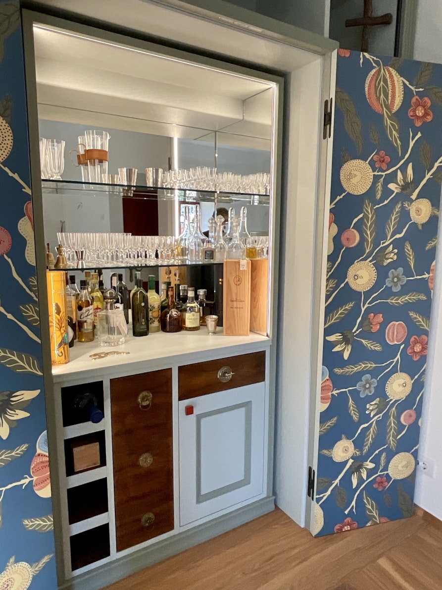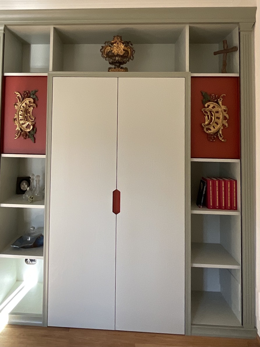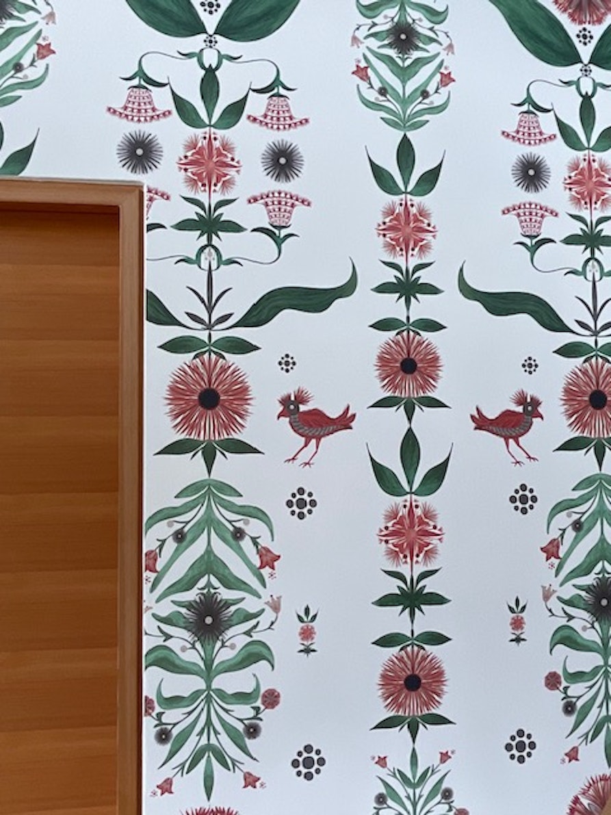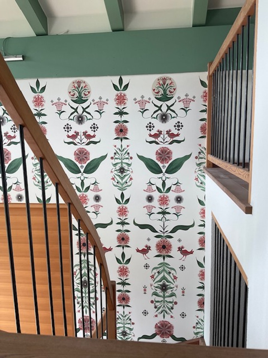 In questo periodo sto lavorando agli interni di una casa privata nel Liechtenstein, immersa in un contesto montano simile a quello delle nostre valli. Anche qui sto intervenendo su un ambiente storico, curando in particolare il rivestimento delle pareti, con una sorta di carta da parati realizzata però su un materiale più duro, simile al metallo, combinata con legno stampato e applicato alle superfici. È un lavoro complesso, anche perché devo interfacciarmi con imprese locali, che non conosco così bene come gli artigiani di fiducia con cui lavoro abitualmente. Sto realizzando anche una stube completamente stampata in legno, con motivi storici legati al Liechtenstein: castelli, piante e altri soggetti che mi sono divertita ad identificare e realizzare.