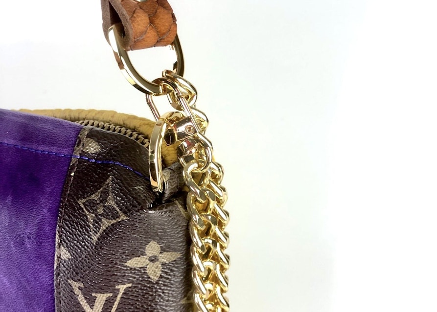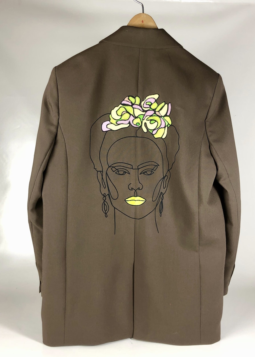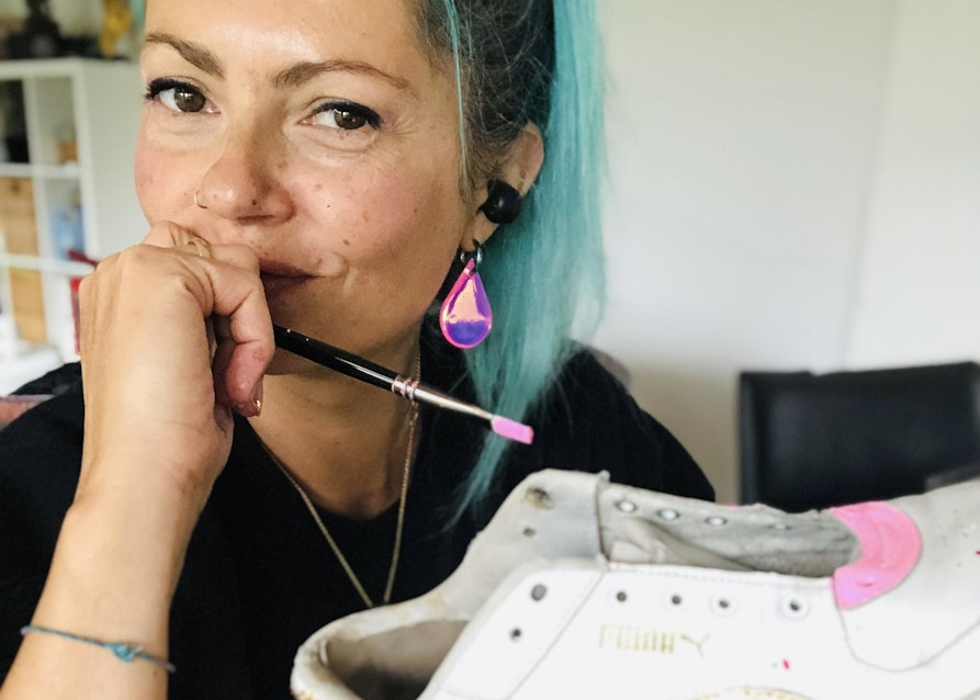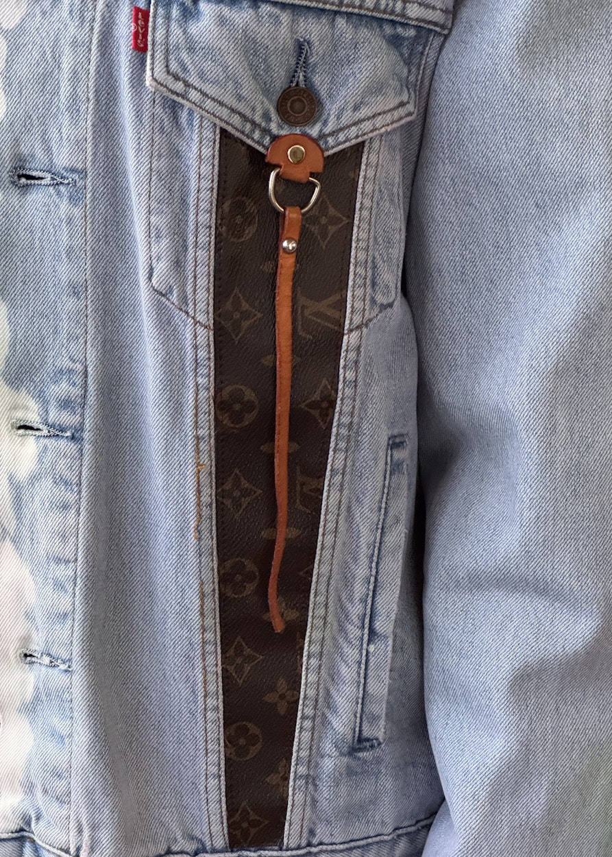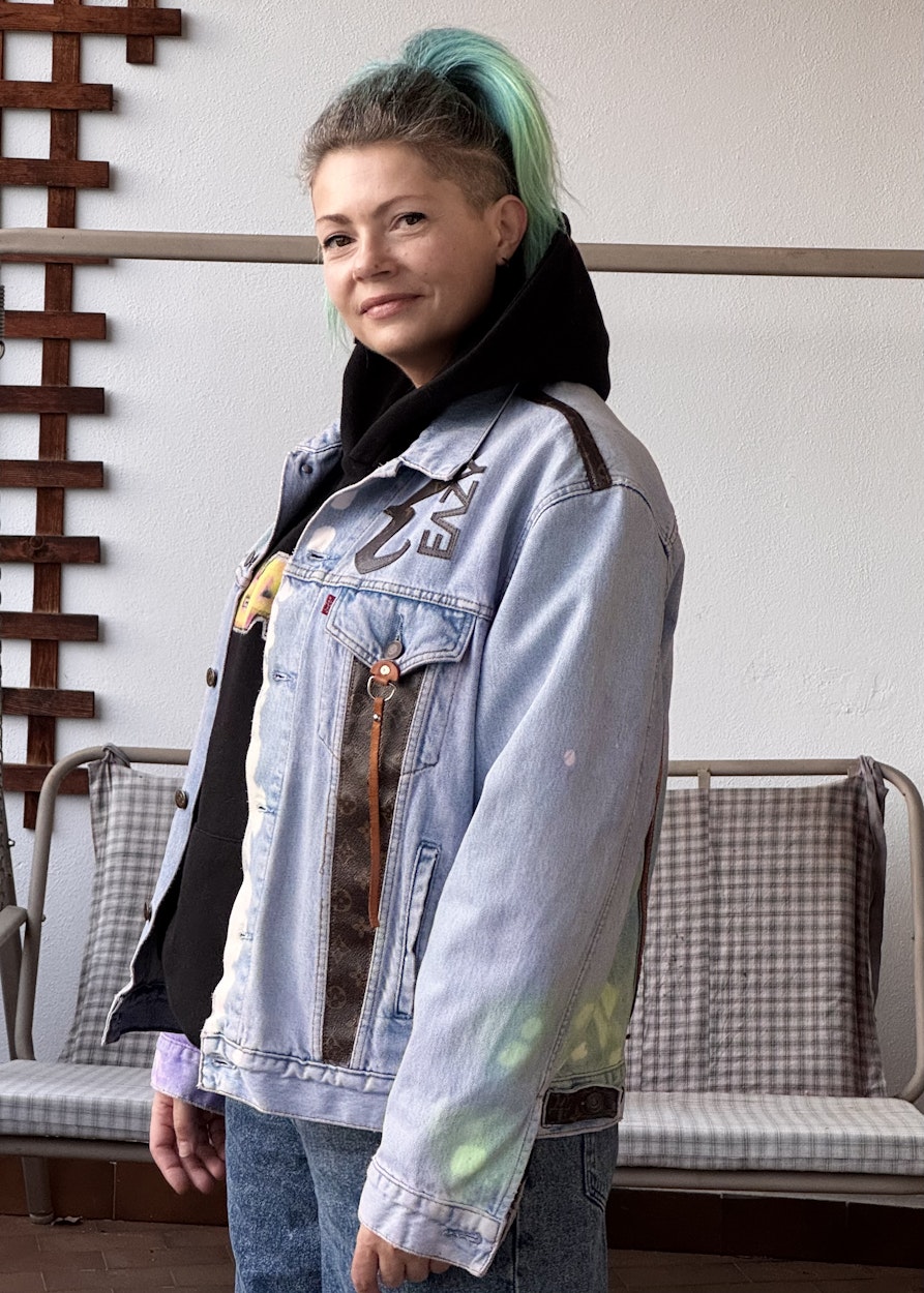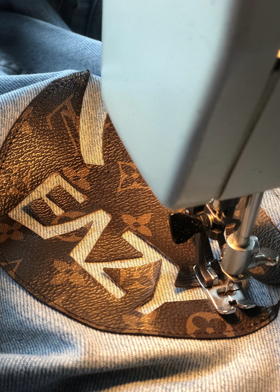 Meine Mutter schenkte mir, als ich 14 war, eine Jeansjacke von Levi‘s. Das war damals etwas sehr Besonderes. Sie hat irgendwann einen Fleck bekommen und wurde mir auch zu langweilig. Ich wollte sie mit einem Logo aufmotzen und hatte die Idee, eine stark gebrauchte, originale Louis-Vuitton-Tasche zu bestellen, sie zu zerschneiden und Teile davon auf die Jacke zu nähen. Das Video dazu ist viral gegangen, eine solche Tasche zu zerschneiden kommt wohl eher selten vor. Aus den Resten habe ich noch kleine bunte Brieftaschen genäht und Birkenstocks überziehen lassen. Es macht mir einfach Spaß, immer wieder etwas Neues auszuprobieren.