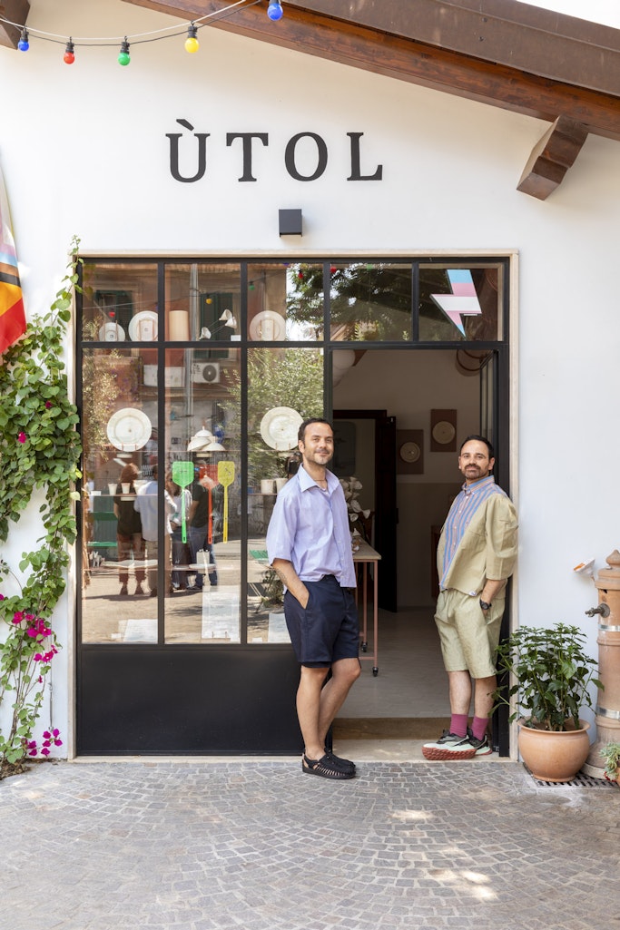 Immergersi nel mondo di ÙTOL è come ballare una danza piena di allegria, sguardi ironici, sorrisi splendenti, fragilità intime, in cui ad un tratto ci si ferma, si rallenta e si ascolta la materia viva, la si fa propria, il cuore batte, le mani calde sono pronte al dono, i corpi sono pronti allo scambio, all’abitare un mondo insieme fantastico e utile, poetico e politico. “È un movimento che va dalla strada alla materia, da fuori a dentro”: questa frase racchiude bene l’essenza di ÙTOL, studio di design e ceramica fondato a Roma da David Romelli e Flavio Rossi. Nato nel quartiere Pigneto, crocevia vivo di sperimentazioni artistiche e artigianali, il progetto prende forma dall’incontro tra due percorsi complementari: da un lato la dimensione lenta e silenziosa della montagna, dall’altro l’energia stratificata e immediata della città.