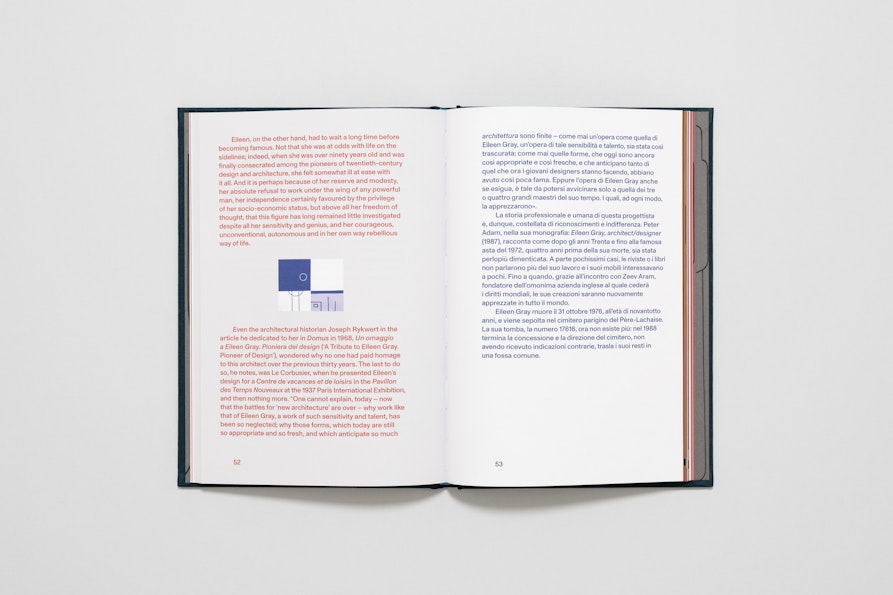 Auf Italienisch und Englisch und in eindrucksvollen Zeichnungen erzählen sie eine Geschichte, die allein ihr gewidmet ist. Keine klassische Architekturbio jedoch, sondern ein sorgfältig gestaltetes Objekt, das zwischen Essay, Bild und Hommage oszilliert. Diese Kombination macht das Buch besonders: Die Zeichnungen erzählen die Architektin atmosphärisch, fast traumartig, nicht dokumentarisch. Die Publikation ist ein konzentriertes Porträt einer Denkweise. Gisella Bassanini und Giovanna Canzi gelingt es, eine Haltung sichtbar zu machen: Unabhängigkeit, Präzision, Zurückhaltung, Beweglichkeit, Intimität und Freiheit. Fein verweisen die Zeichnungen von Beppe Giacobbe auf Begegnungen und innere Distanz, Widerstand gegen starre Modernismen und die Fähigkeit, Räume zum Leben zu denken. Das Buch steht im Geist von Eileen Gray selbst. Und so schließt sich erneut ein Kreis.