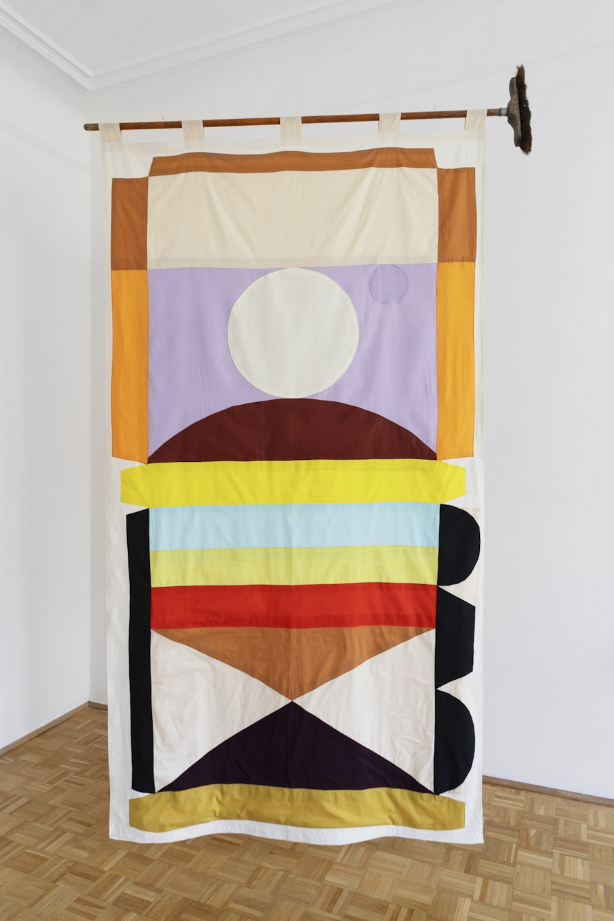 Isabel Peterhans: Es gibt Werke, die nach Künstlerin getrennt, sich gegenüber hängen, andere hängen lückenlos beisammen wie falsche Zwillinge, textile Arbeiten bilden eine raumfüllende Hülle, wie eine Umarmung, und die letzte Installation Seamless, die Lea und ich extra für den Kunstraum angefertigt haben, ist zu durchwandern. Die verschiedenen Arten, wie wir unsere Werke kombiniert haben und wie wir sie den Betrachter:innen zugänglich machen, weist auf den Prozess des Kennenlernens hin. Es ist die spielerische Art, wie man sich begegnet, einen risikofreudigen Schritt wagt, wie man balzt, wie man die Aufmerksamkeit des Gegenübers erhascht, wie man plötzlich Gemeinsamkeiten findet, sich im Gegenüber sieht, sich auch im Gegenüber verliert und dann wieder zu sich zurückfindet oder erst dadurch zu sich findet. Dieser Prozess ist nicht linear und kann beliebig oft in alle Richtungen durchgangen werden.