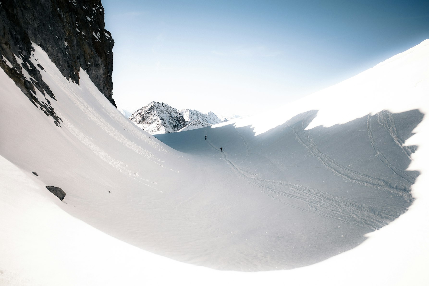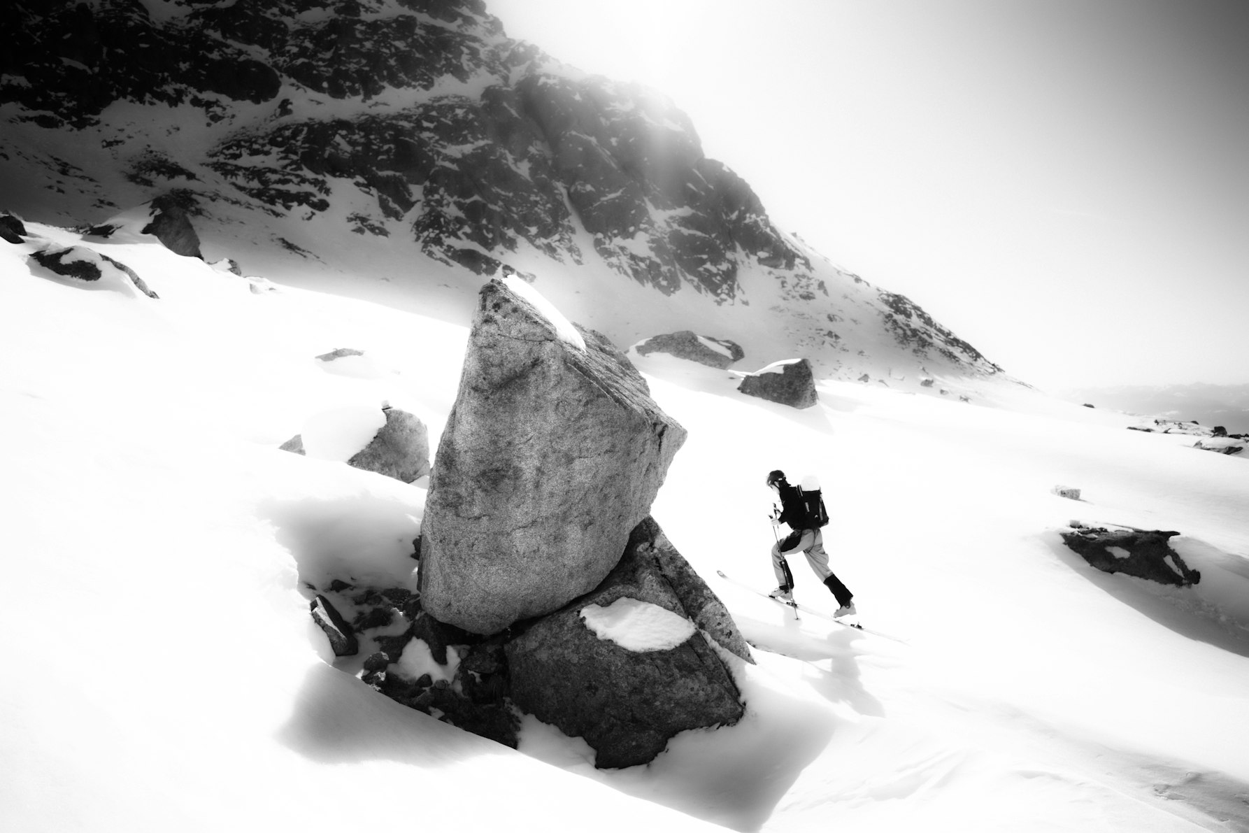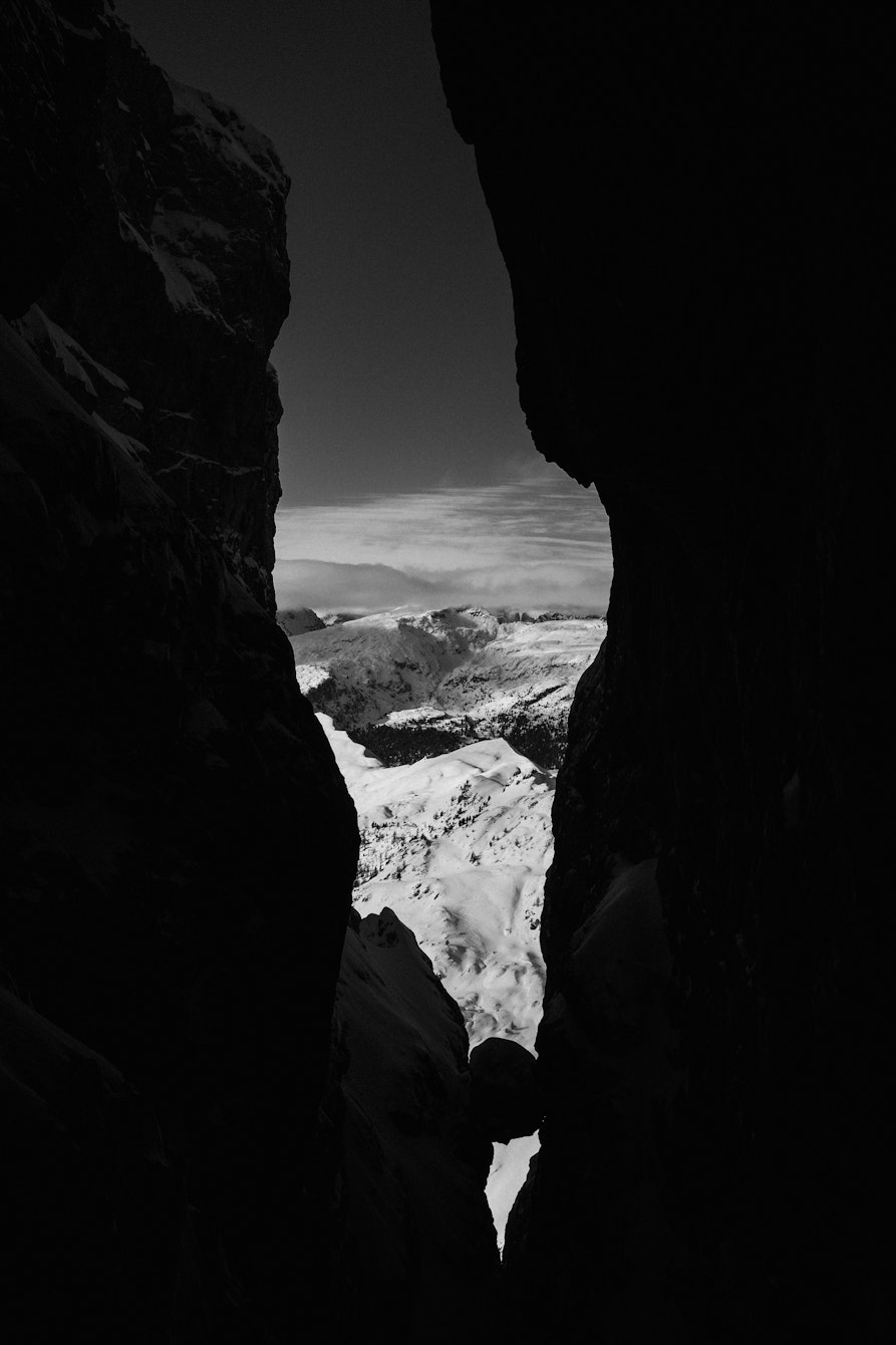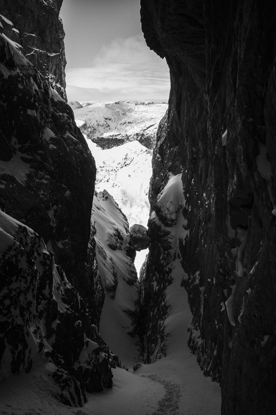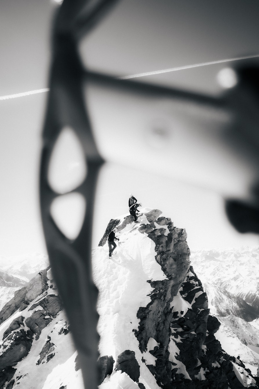 Al momento è un corpo di scatti in continua espansione, che forse un giorno troverà la sua forma definitiva in un libro. Amo i contrasti forti e la post-produzione in bianco e nero, perché mi permette di esasperare la presenza del nero nell'immagine. Spesso fotografo durante azioni sportive impegnative: in quei momenti non puoi pensare solo all'estetica, devi pensare alla sicurezza e ai passi giusti. Per questo preferisco scattare molto, per non perdere quel momento irripetibile che la montagna ti concede mentre sei nel pieno dell’azione.