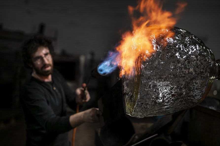 Il suo lavoro si colloca in un’area di confine affascinante, dove arte, design e artigianato si fondono senza soluzione di continuità. L’obiettivo dichiarato è quello di trasformare la scultura in oggetto d’uso, senza rinunciare a una forte carica espressiva. I suoi oggetti in vetro, realizzati nel forno a caldo, nascono attraverso una combinazione di tecniche: in parte vengono soffiati in stampi di legno, in parte sono modellati liberamente, lasciando spazio all’imprevisto e all’intuizione del momento.