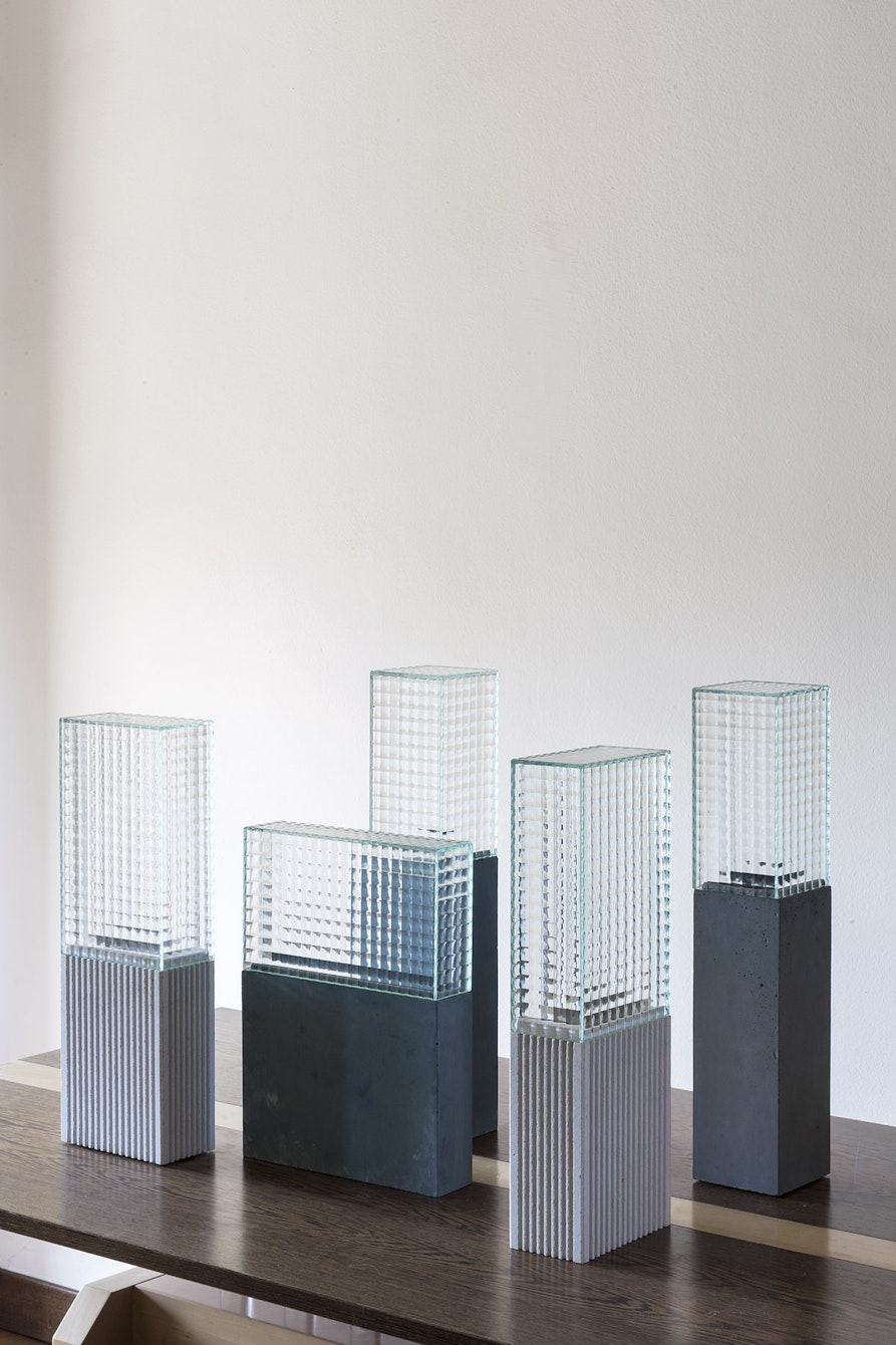 In uno dei suoi progetti più recenti, una serie di parallelepipedi in cemento e vetro si trasforma nello skyline di una città immaginaria. Un paesaggio architettonico sospeso tra suggestioni cinematografiche e letterarie: la Metropolis di Fritz Lang da un lato, e le Città invisibili di Italo Calvino dall’altro. È proprio in quel dialogo immaginario tra l’imperatore dei Tartari, Kublai Khan, e l’esploratore veneziano Marco Polo, che affiorano le atmosfere evocate da Schweizer: città reali, sognate o inventate, che si scompongono e si ricompongono in oggetti dalle molteplici interpretazioni.